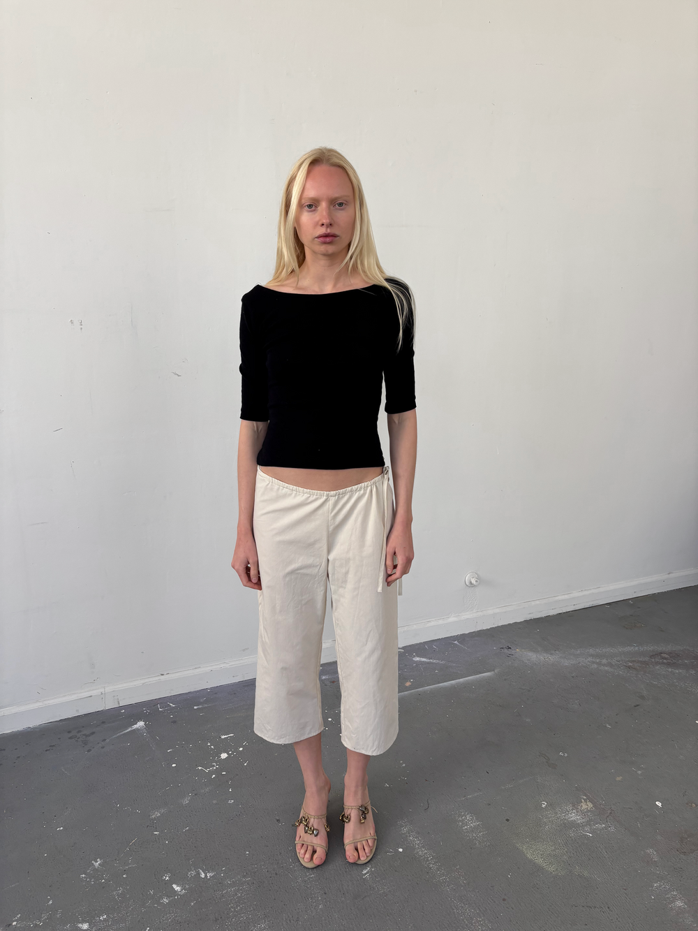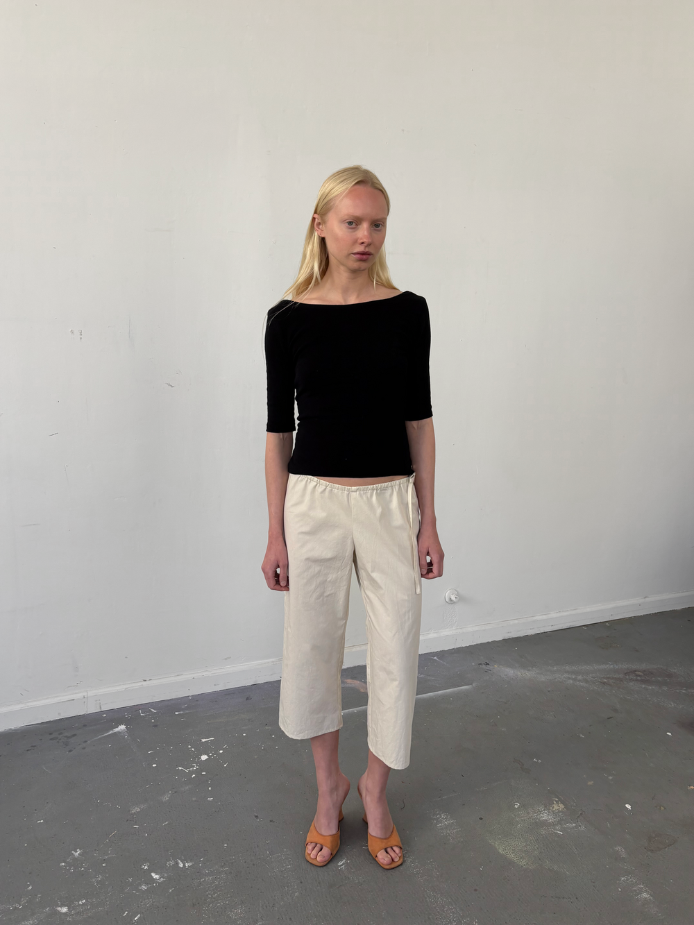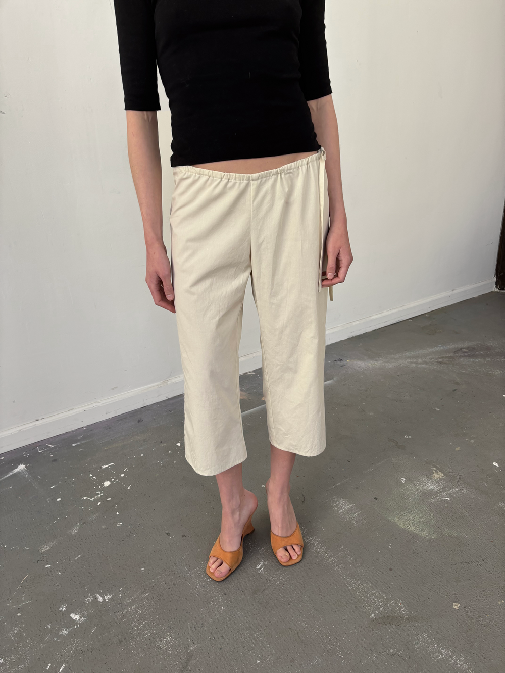 • 신축성이 강하지 않은 100% 면 포플린 원단으로 제작되었습니다. 끈을 통해 허리를 자유롭게 조절할 수 있습니다.