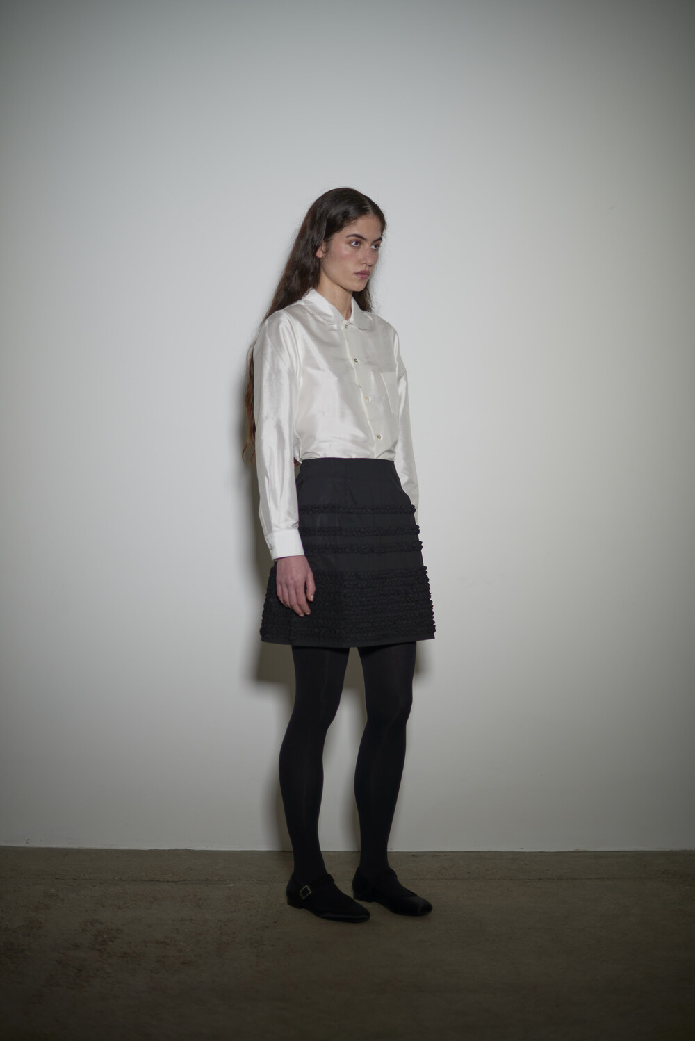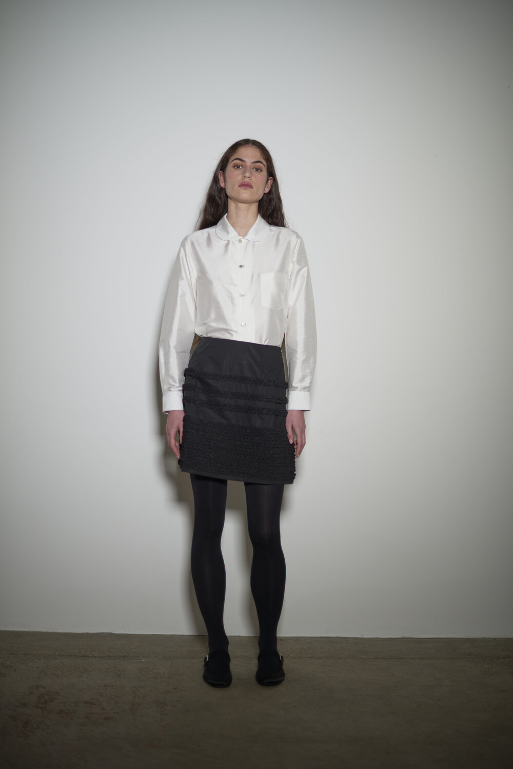 Davis Skirt 는 적당한 기장감의 미니 스커트로, 마치 휘핑 크림을 짠 것과 같은 디테일이 특별한 아이템입니다.
