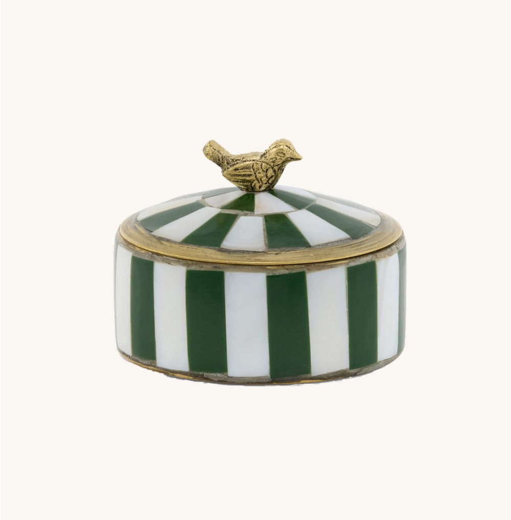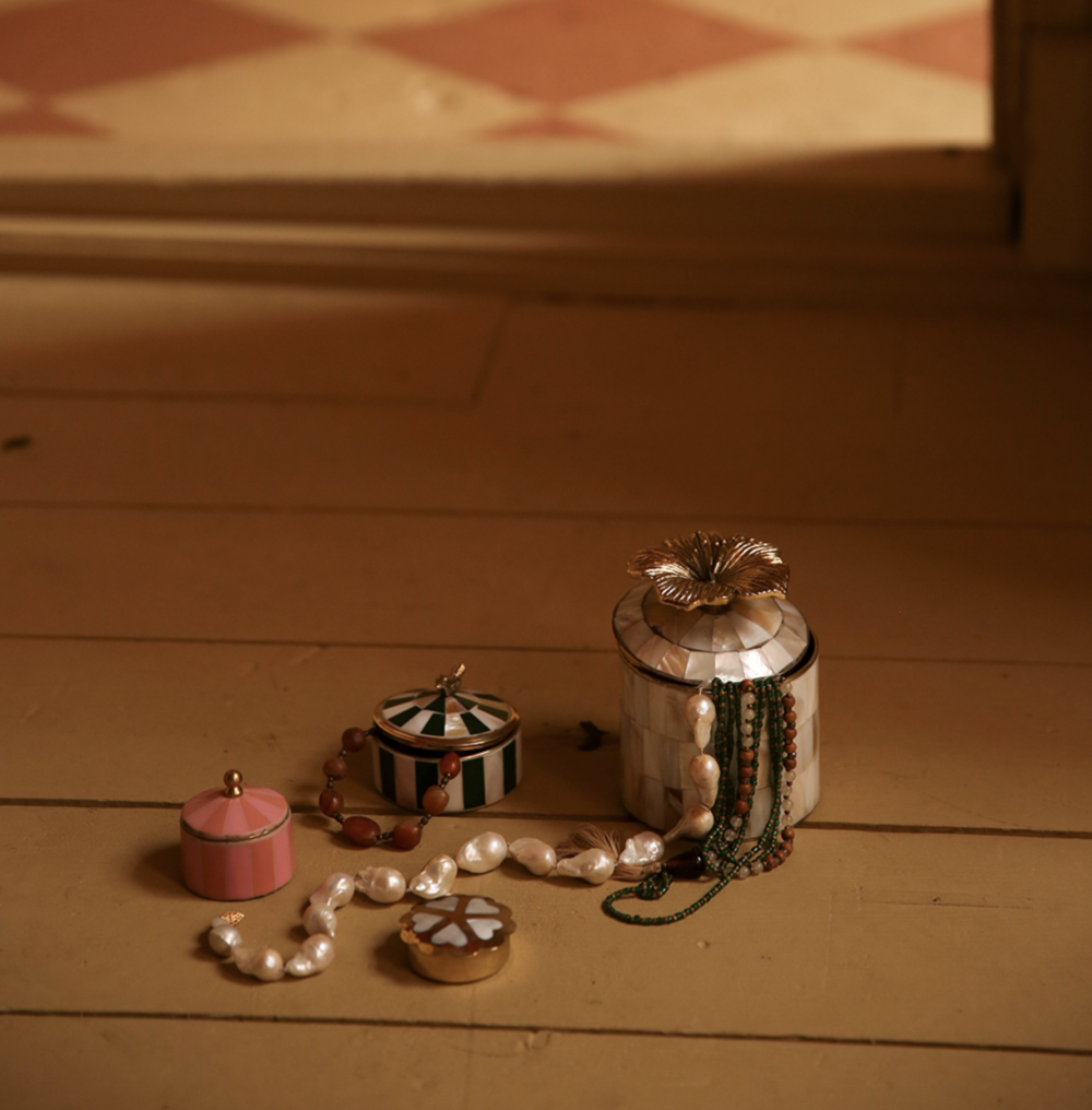 Lola Circus Box에 소중한 보물을 모두 담아보세요. 인도 현지 장인들이 직접 수작업으로 제작한 이 정교한 박스는 재활용 황동, 레진, 그리고 천연 조개껍질로 제작되었습니다. 이 특별한 수공예 제품을 선택하시면 해당 제품이 생산되는 지역 사회를 지원하는 데 도움이 됩니다.