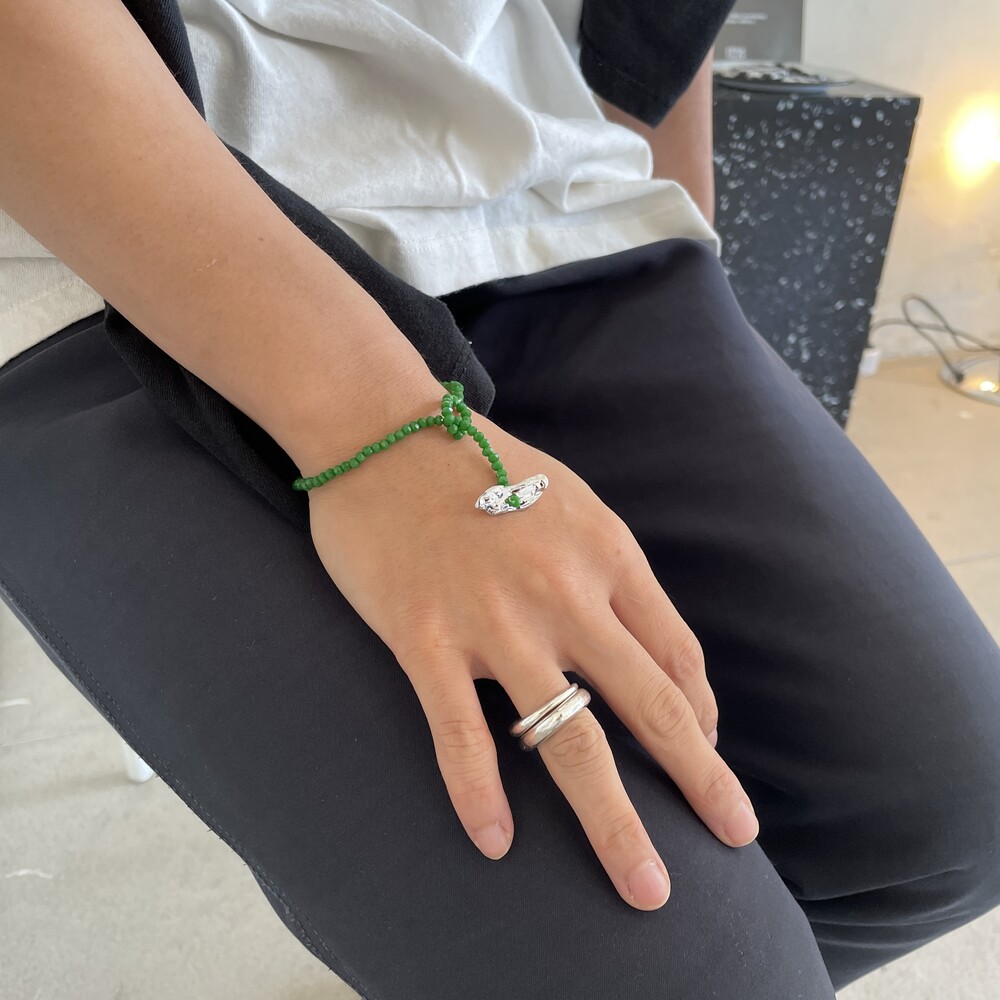 특이하게 연결고리가 아닌 홀을 통해 사이즈를 조정하여 착용할 수 있는 제품으로, 개성있는 디자인이 하나만 착용해도 포인트가