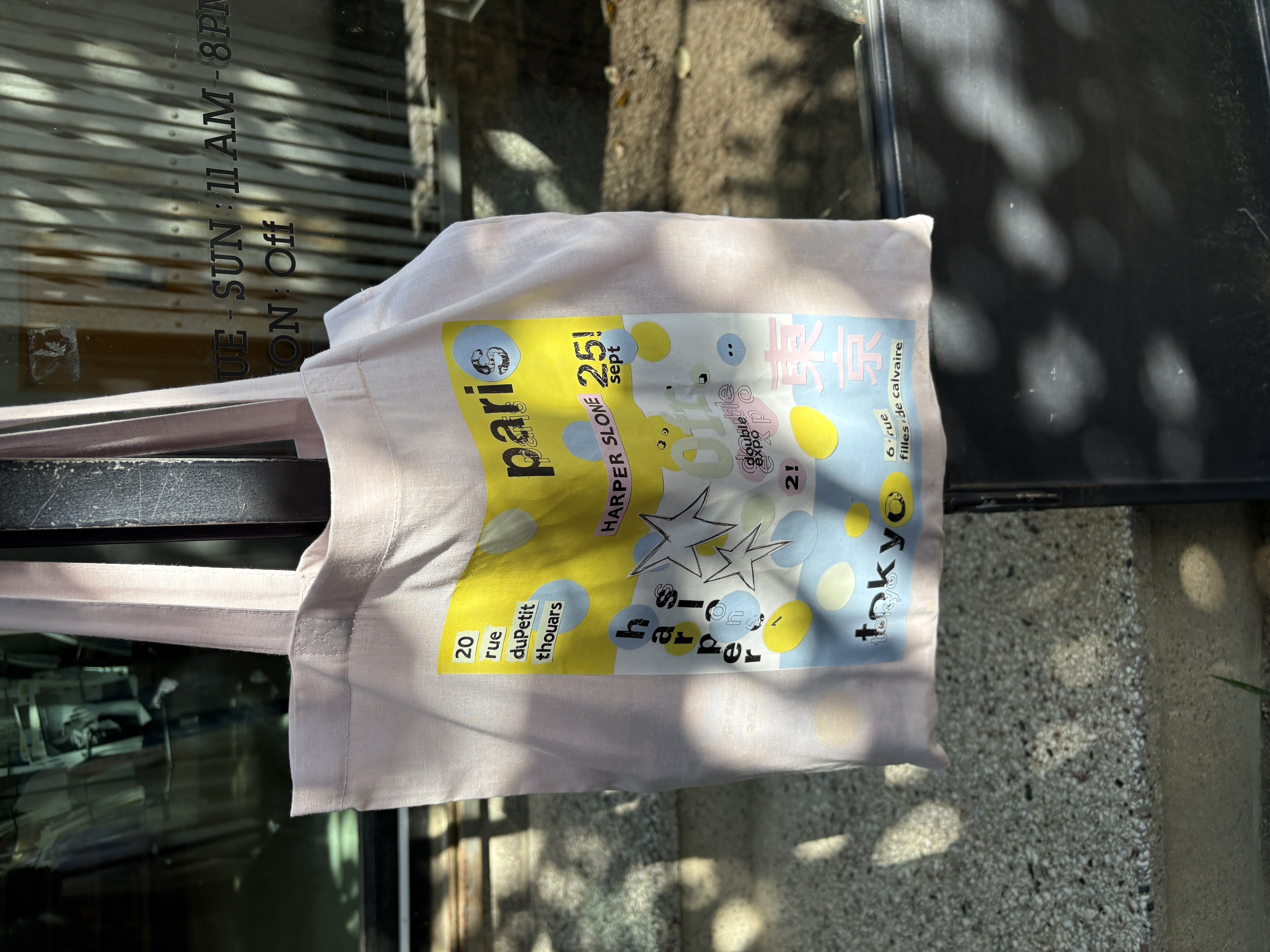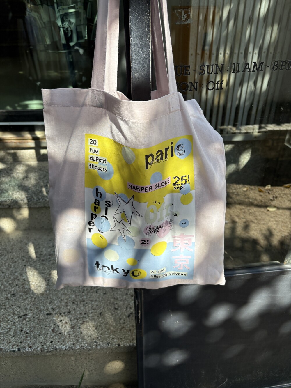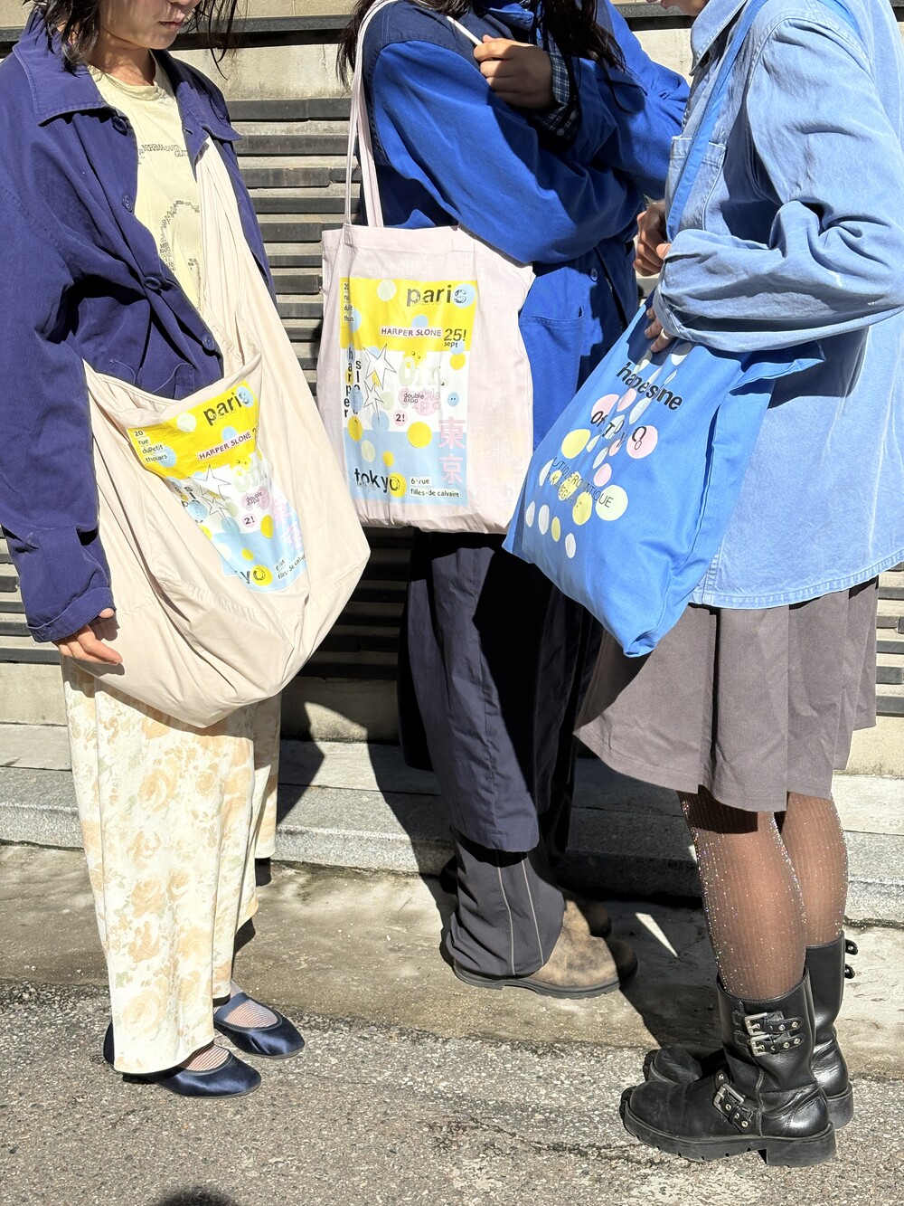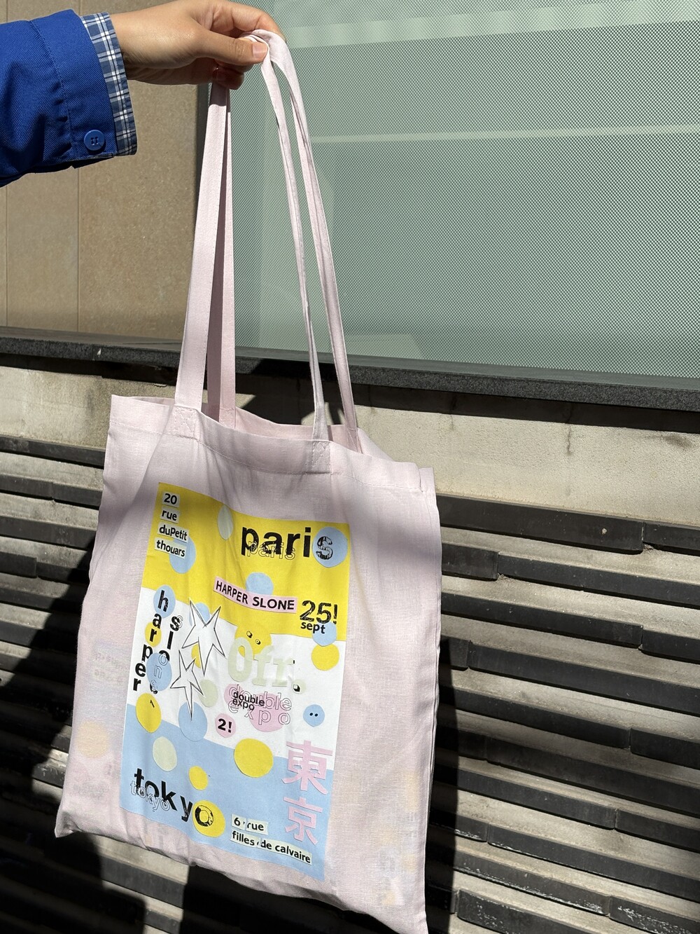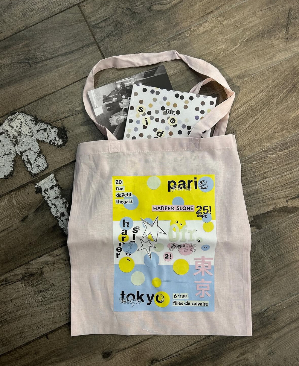 0fr. paris에서 열린 Harper Slone의 도쿄에서 3일간 촬영한 새로운 사진집 전시를 기념하여 제작된 에코백입니다.