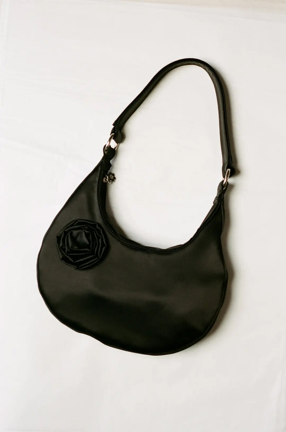 호보백 형태로 어깨에 딱 붙는 숄더백으로 활용하실 수 있으며, 앞면의 코사지 디테일이 사랑스러움을 더해줍니다.
