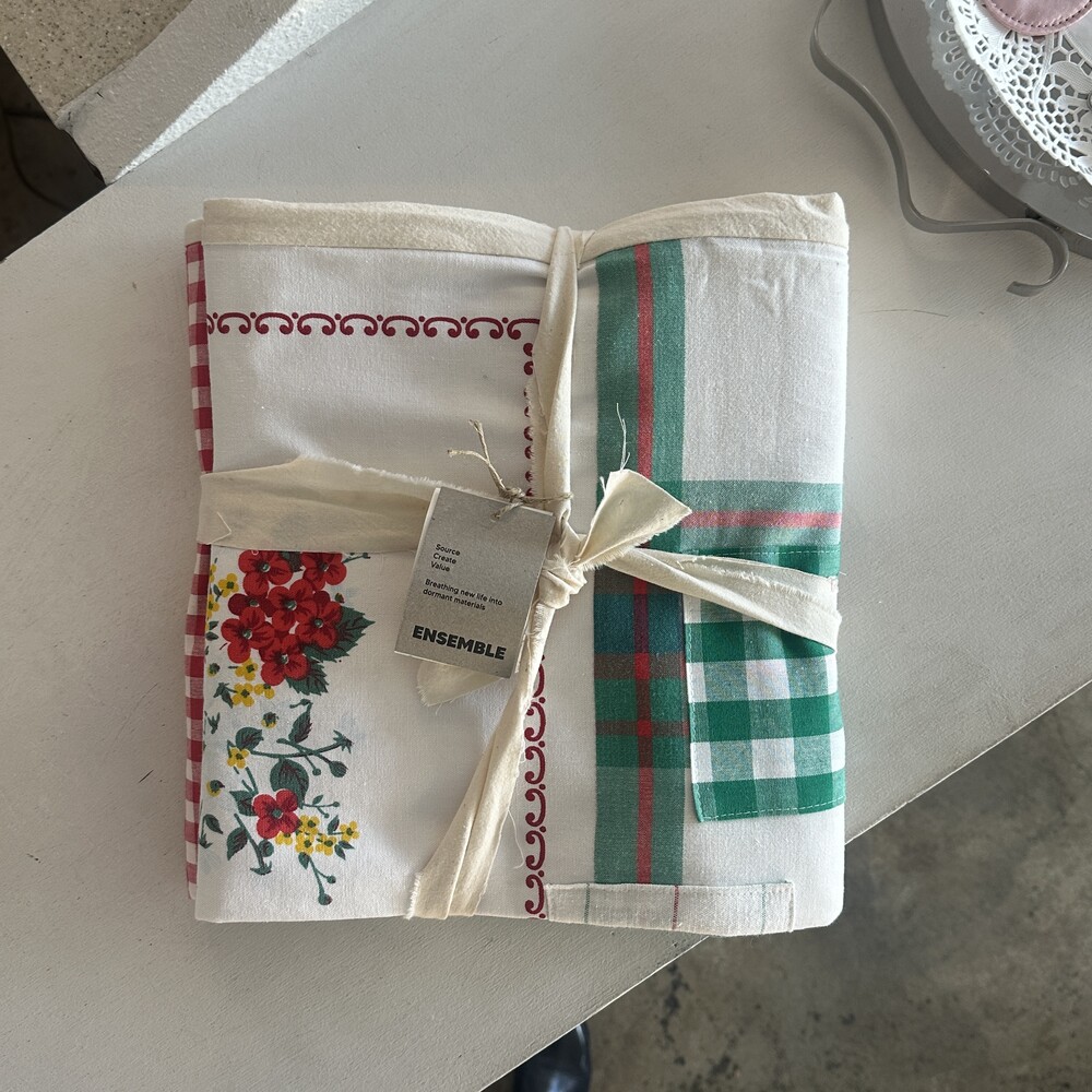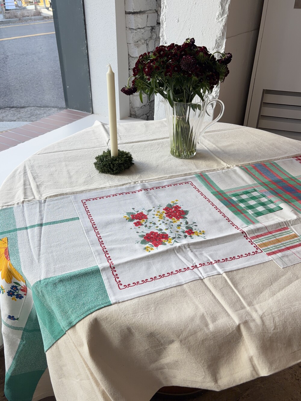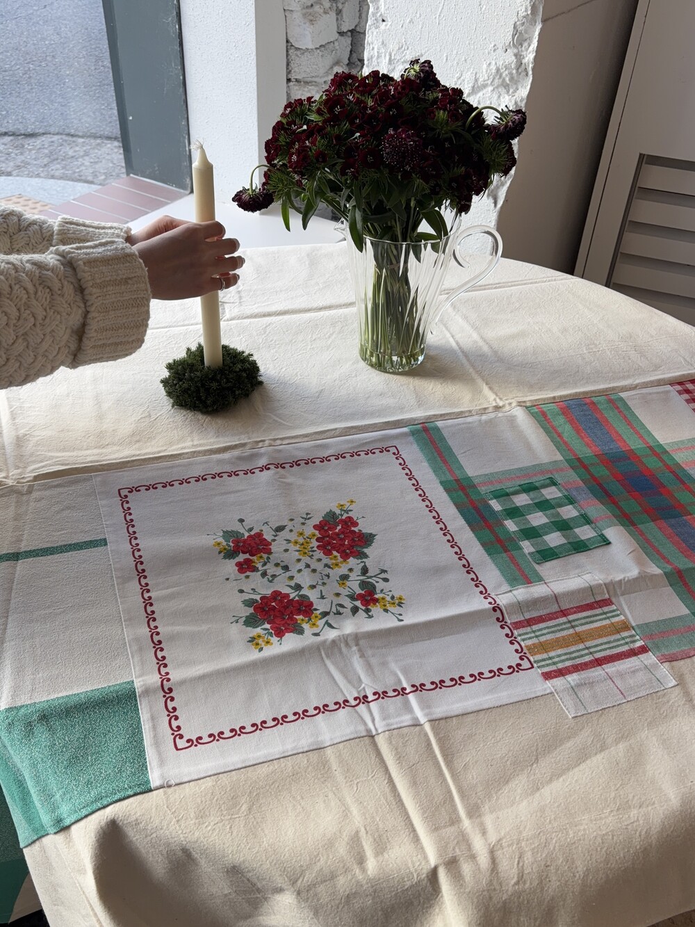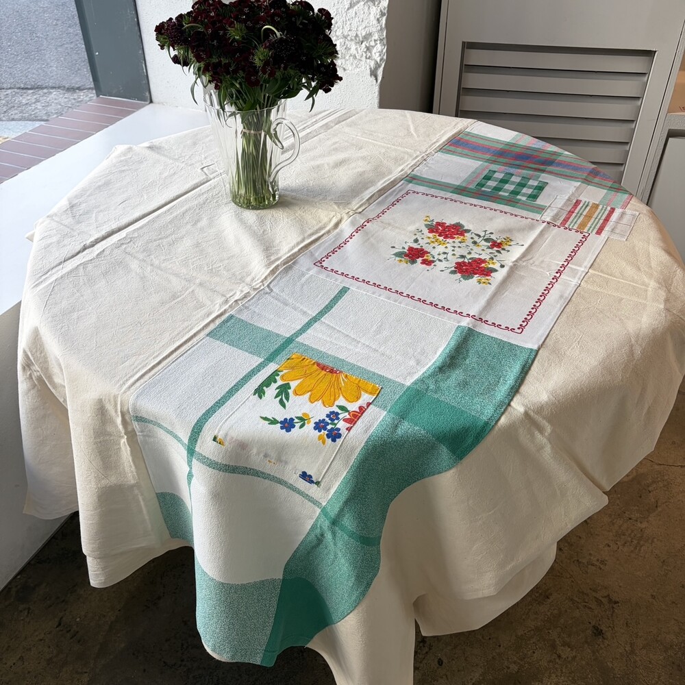 ENSEMBLE - Mix and Match - Tablecloth Ecru, Central Strip, Vintage Fabric