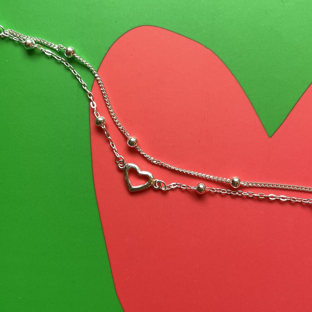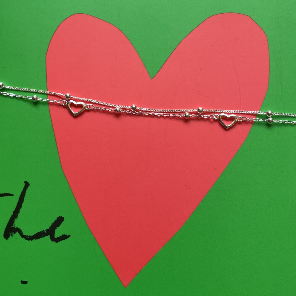 두 가지의 다른 디자인의 체인으로 이루어진 Double Heart Bracelet 입니다.