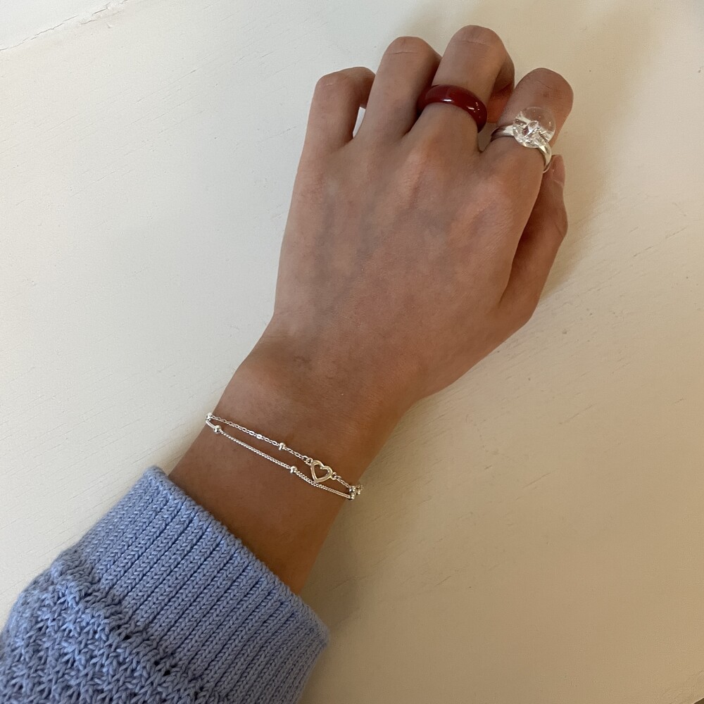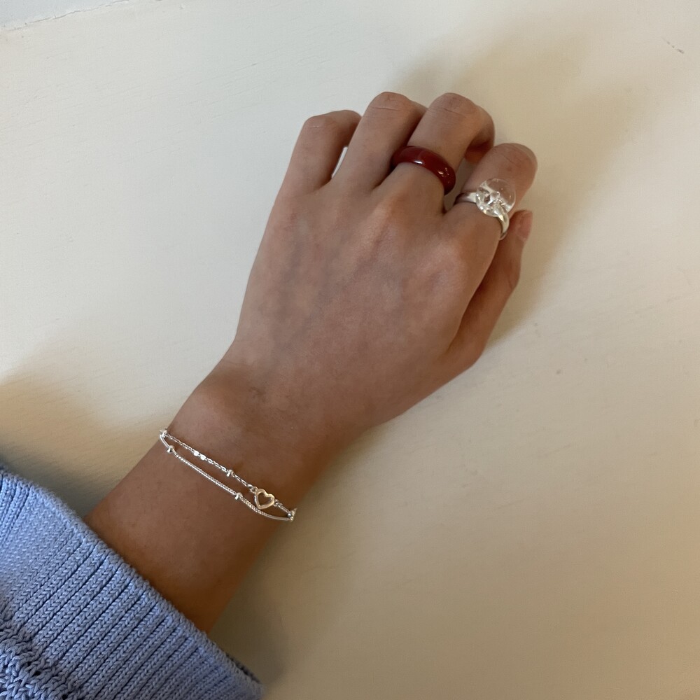 팔찌 두 개를 레이어드를 한듯한 제품으로 심플하면서도 귀여운 무드가 더해져있습니다.