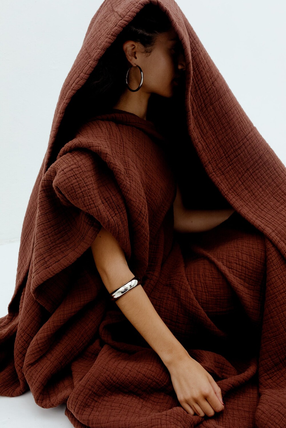 중간 두께의 코튼 소재로 짜인 GABI 블랭킷은 포근함과 통기성 사이의 완벽한 균형을 제공합니다.