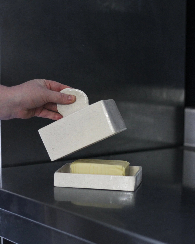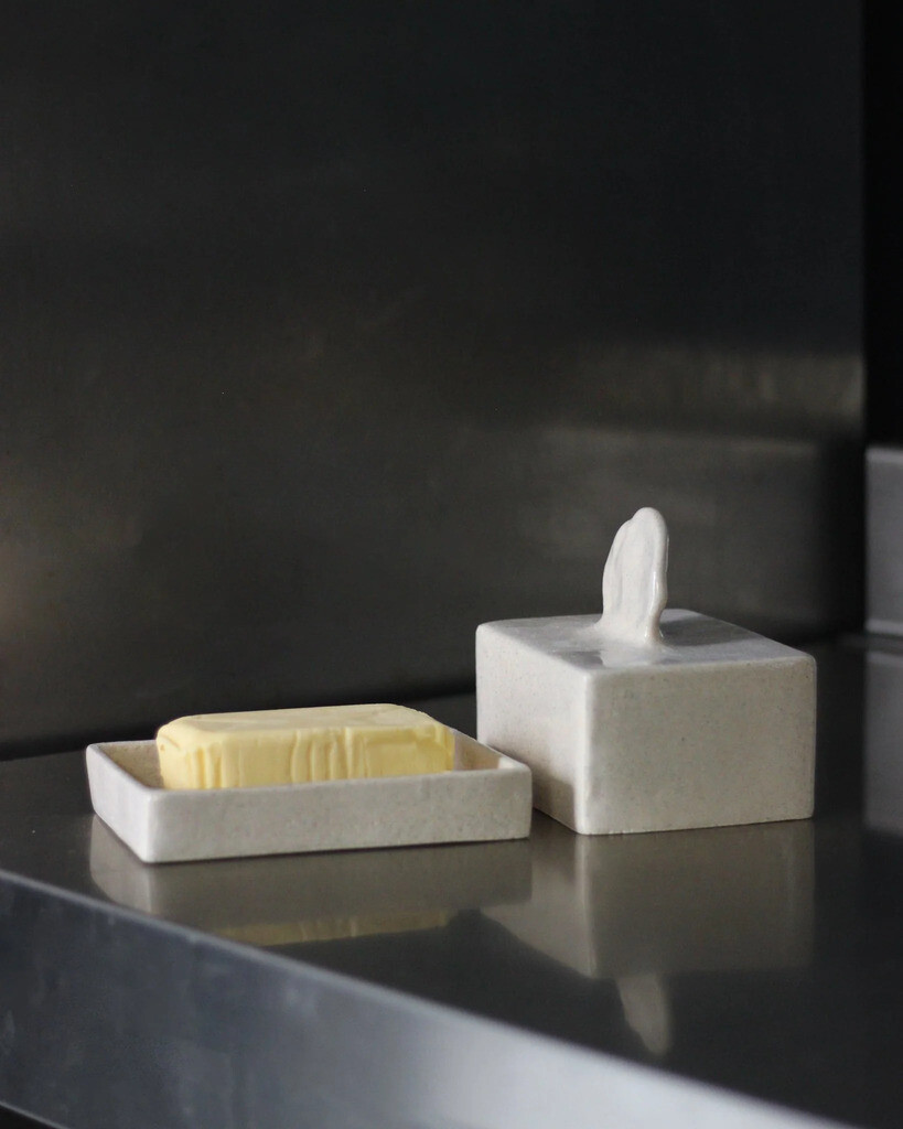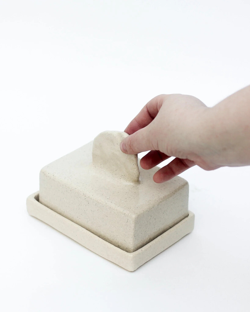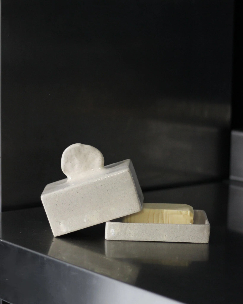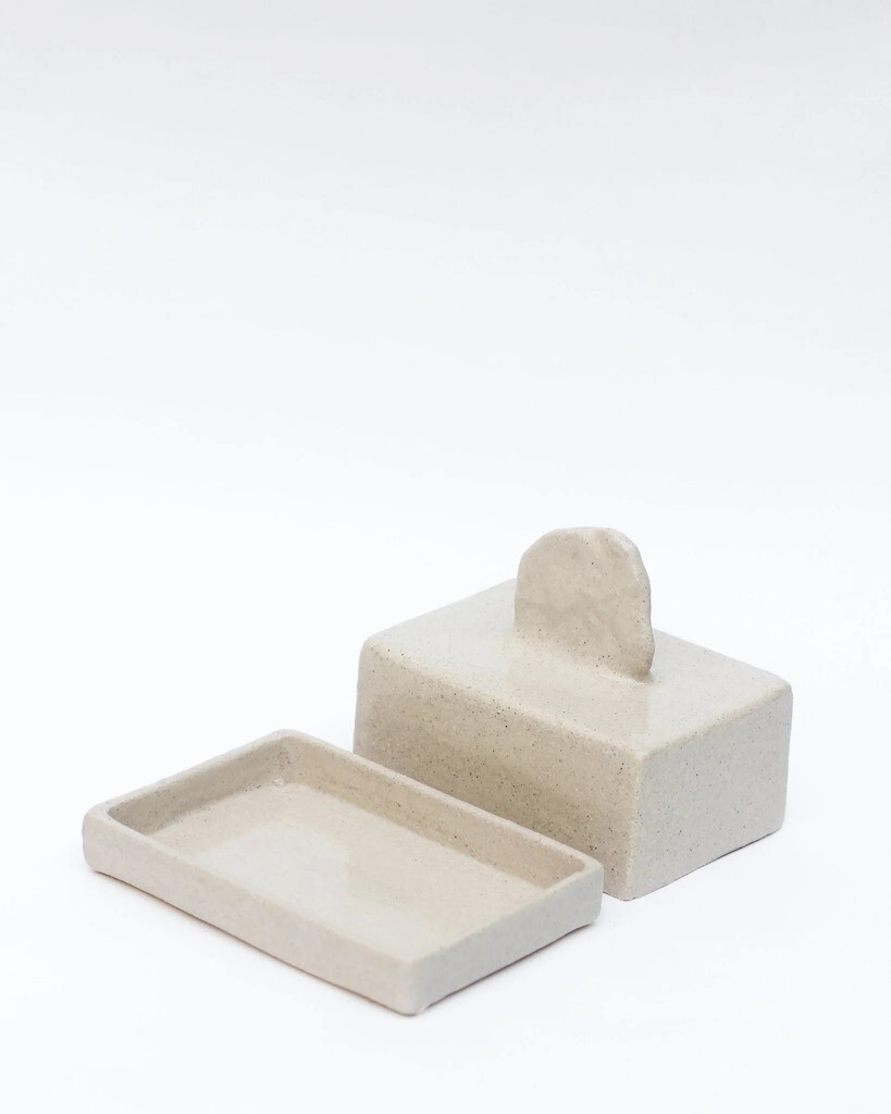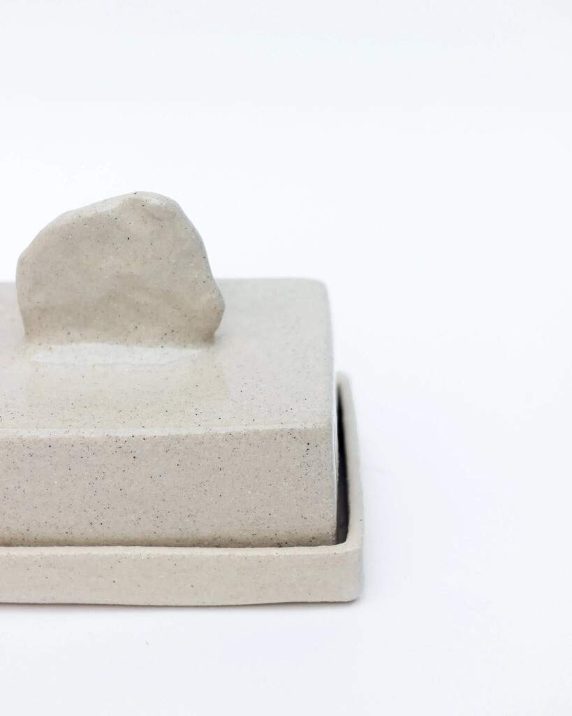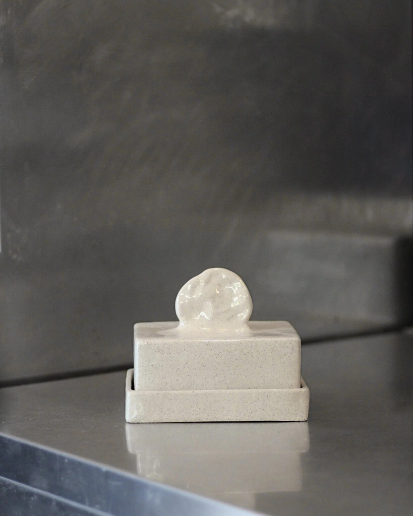 베이지 색상의 샤모트 도자기로 만든 버터 디쉬.