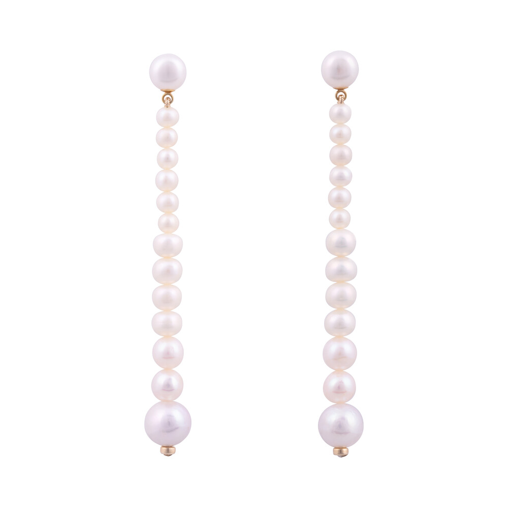 드롭 쉐잎의 Gertrud Earrings 은 정형화 되지 않은 담수 진주로 구성되어 있습니다. 아래로 내려갈수록 진주의 크기가 자연스럽게 커지도록 디자인된 Gertrud Earrings 은 우아한 룩으로 완성시켜 줍니다.