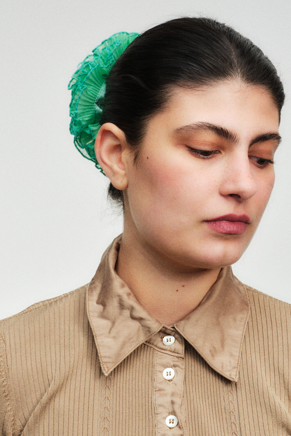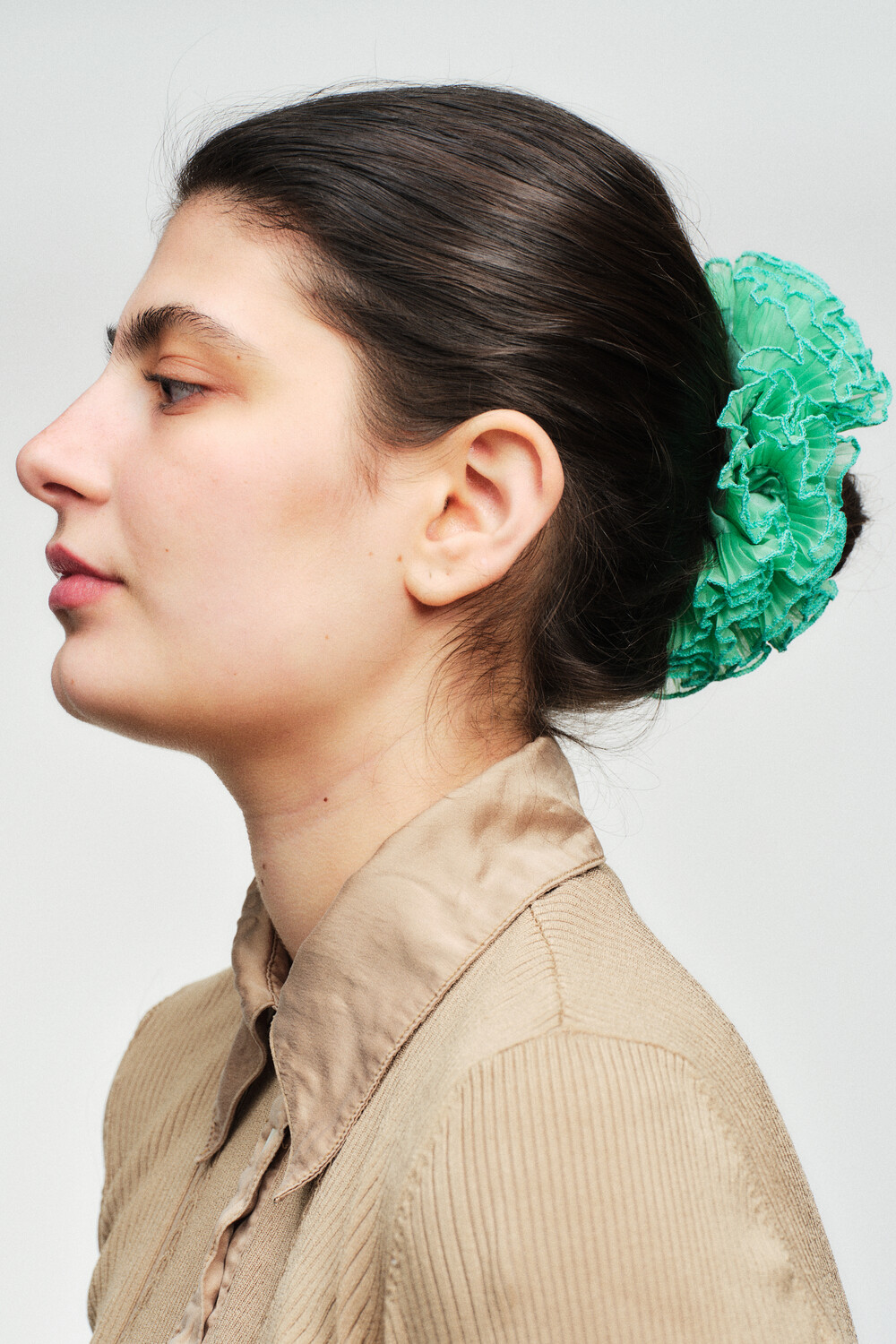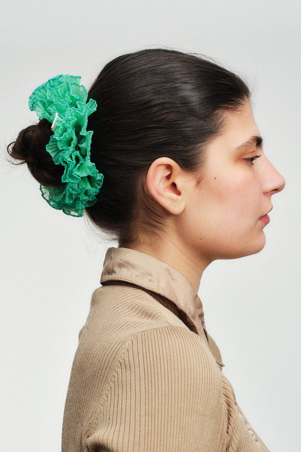 Description 이름 그대로 아름다운 원단으로 제작된 스크런치입니다. 실크와 오간자로 이루어져있어 더욱 더 우아하고 유연한 실루엣이 특징인 제품입니다.