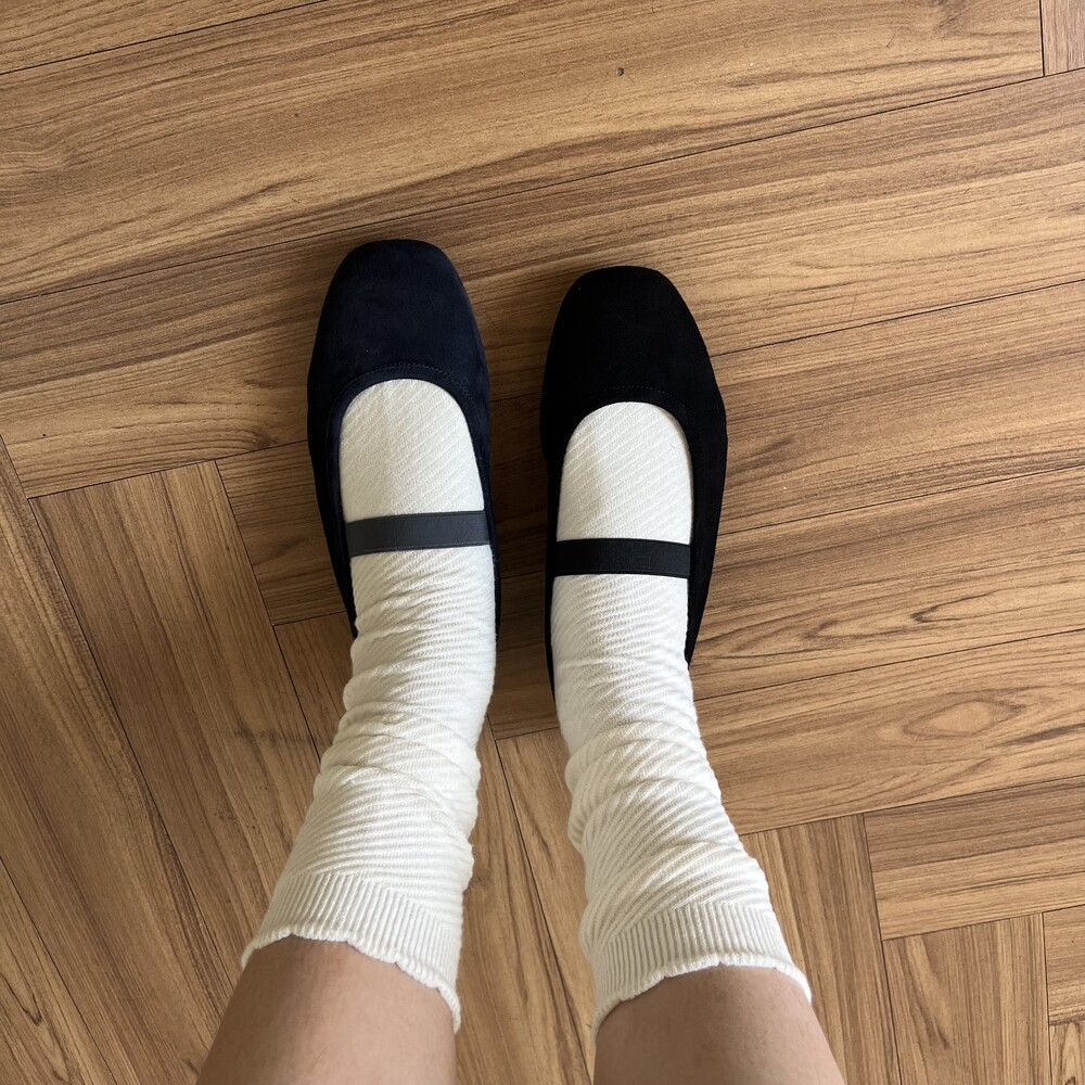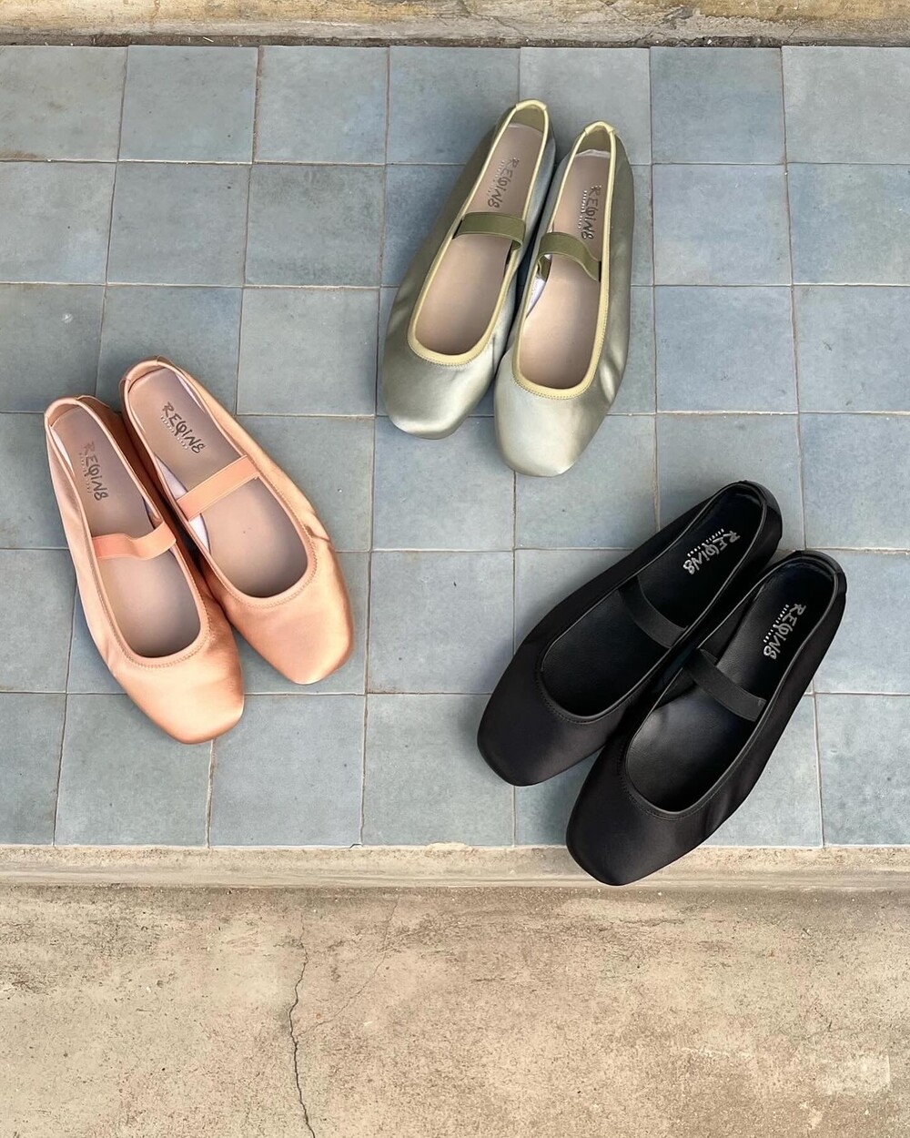 새틴소재를 활용한 플랫슈즈로 마치 발레리나 토슈즈를 연상시키는 러블리한 무드의 제품입니다.