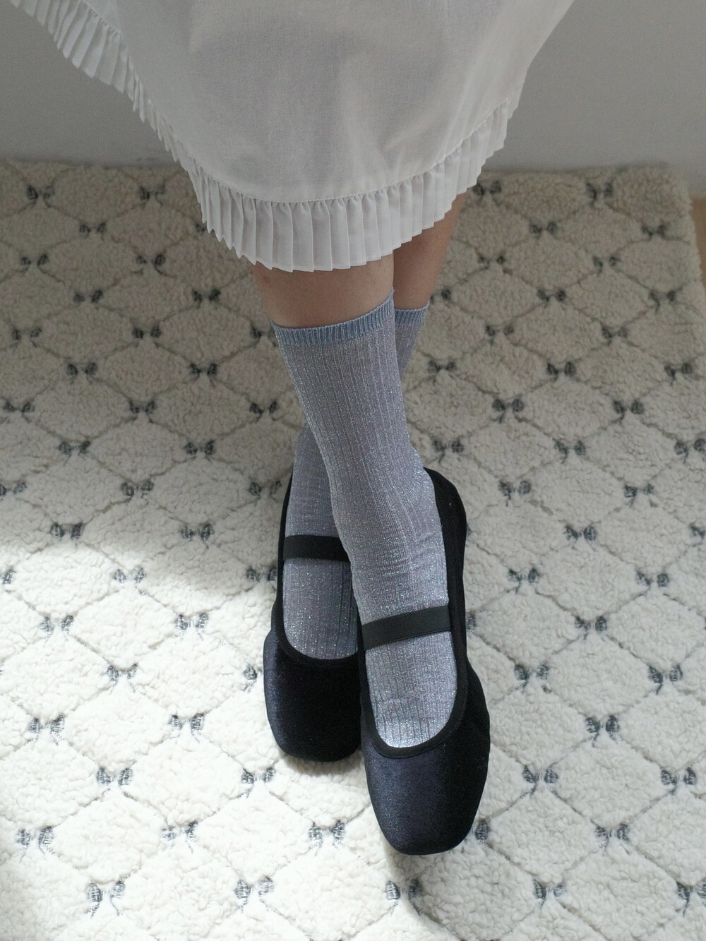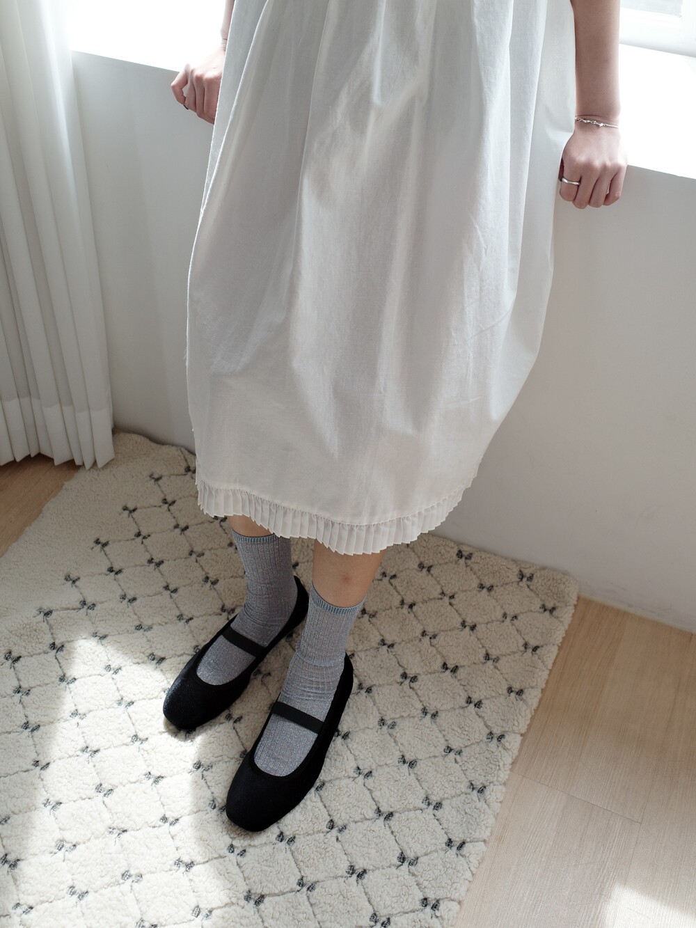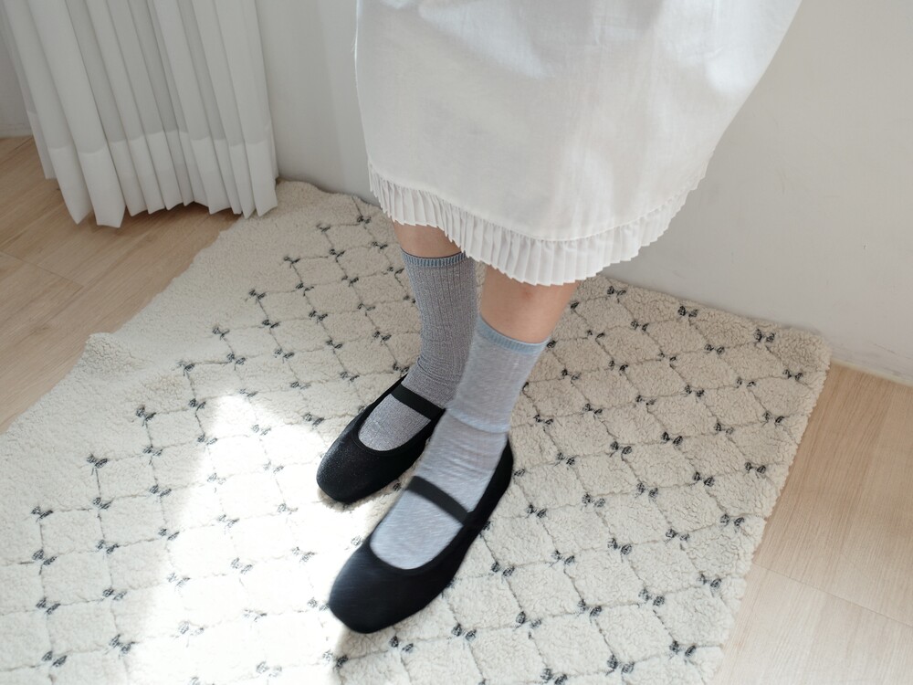 코튼 소재의 고무 스트랩으로 발 잡아주며 마치 발레리나 토슈즈를 연상시키는 러블리한 무드의 제품입니다.