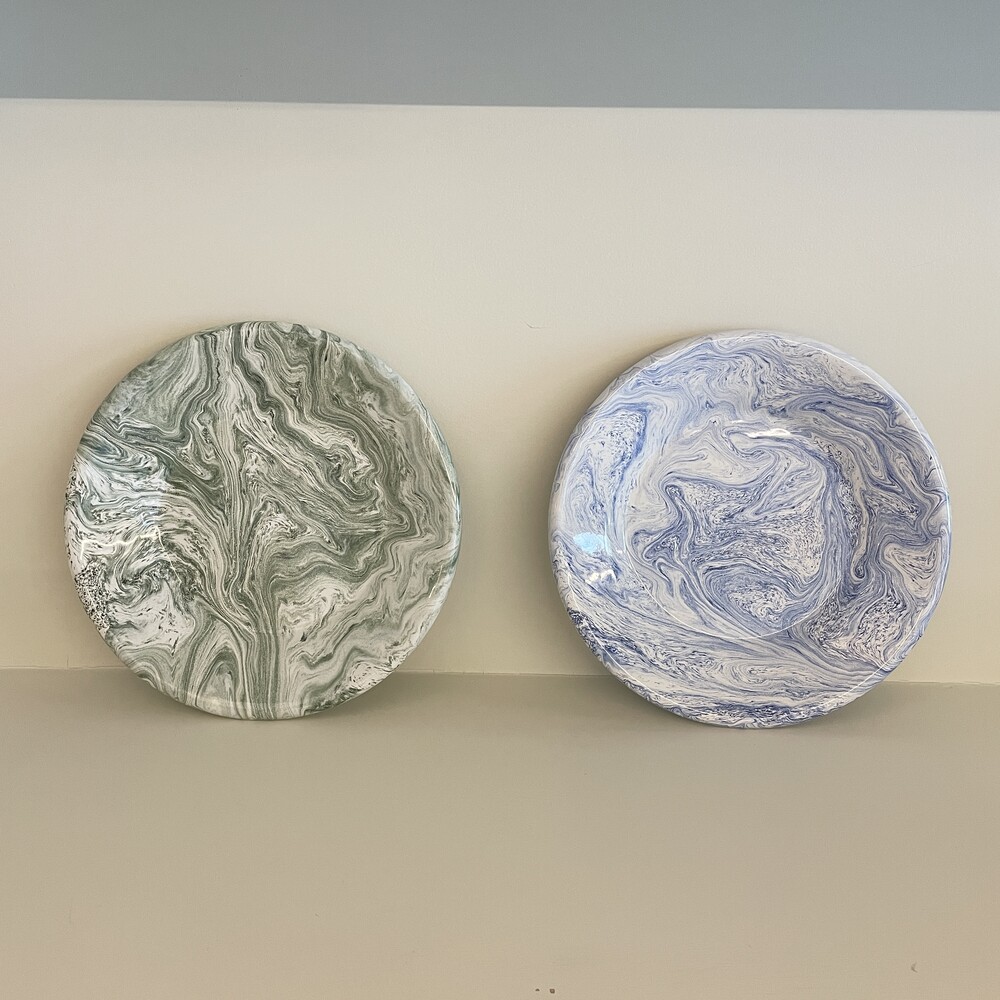 HAY’S Soft Ice Series is made in durable enamelled steel with a marble pattern. The lunch plate is available with blue or green pattern.