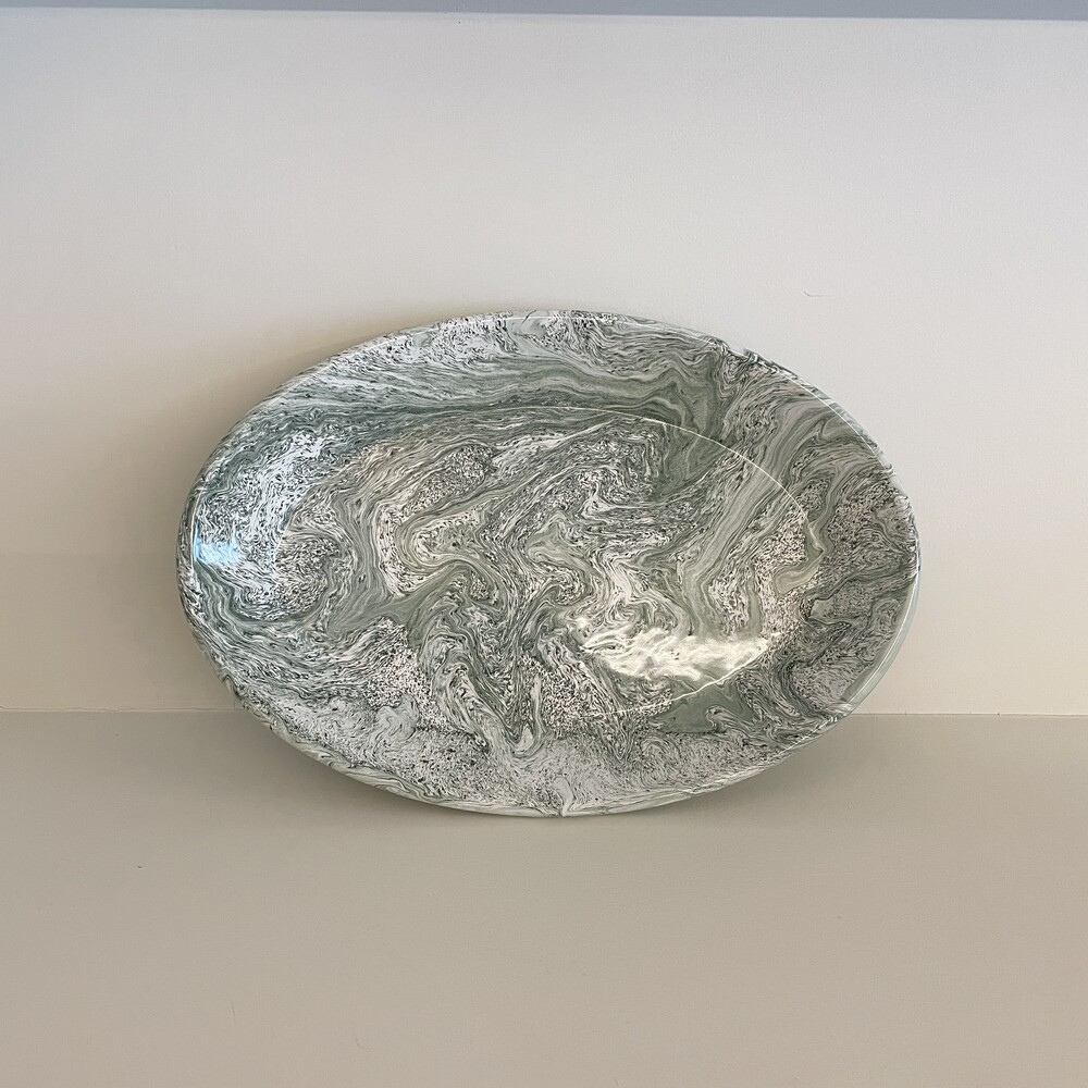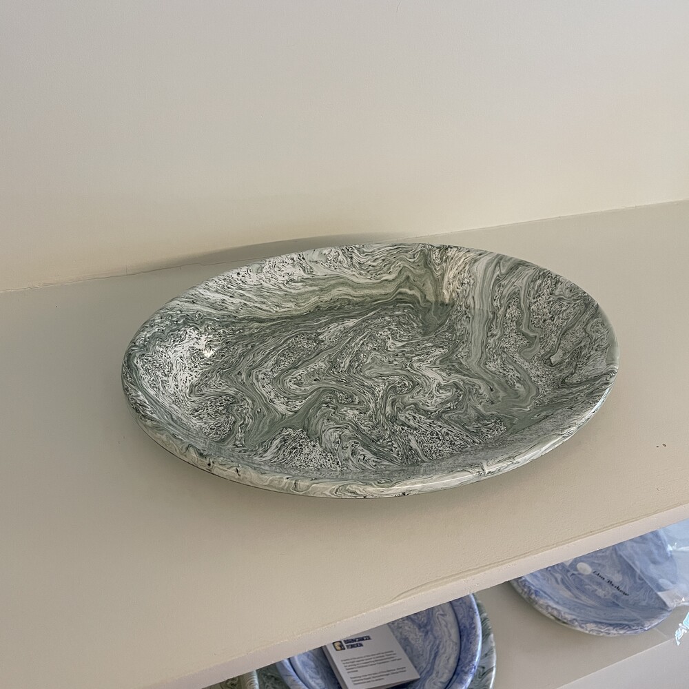 HAY’S Soft Ice Series is made in durable enamelled steel with a marble pattern. The dinner plate is available with blue or green pattern.