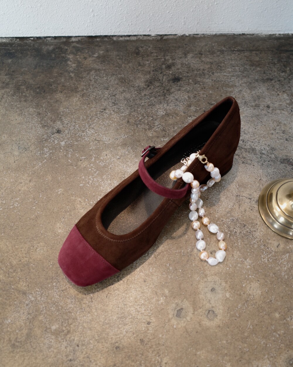 부드러운 스웨이드 소재에 카카오 브라운과 말린 장미빛의 보르도 컬러의 감각적인 배색을 더해, 세련되면서도 따뜻한 분위기를 완성시킬 수 있는 모델입니다.