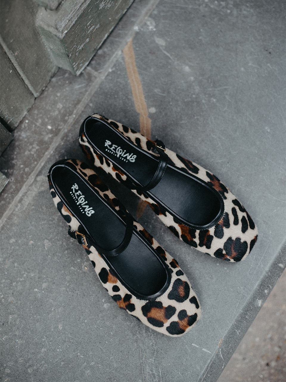 리얼 송치 소재에 레오파드 패턴을 입혀 유니크하면서도 세련된 분위기가 느껴지는 모델입니다.
