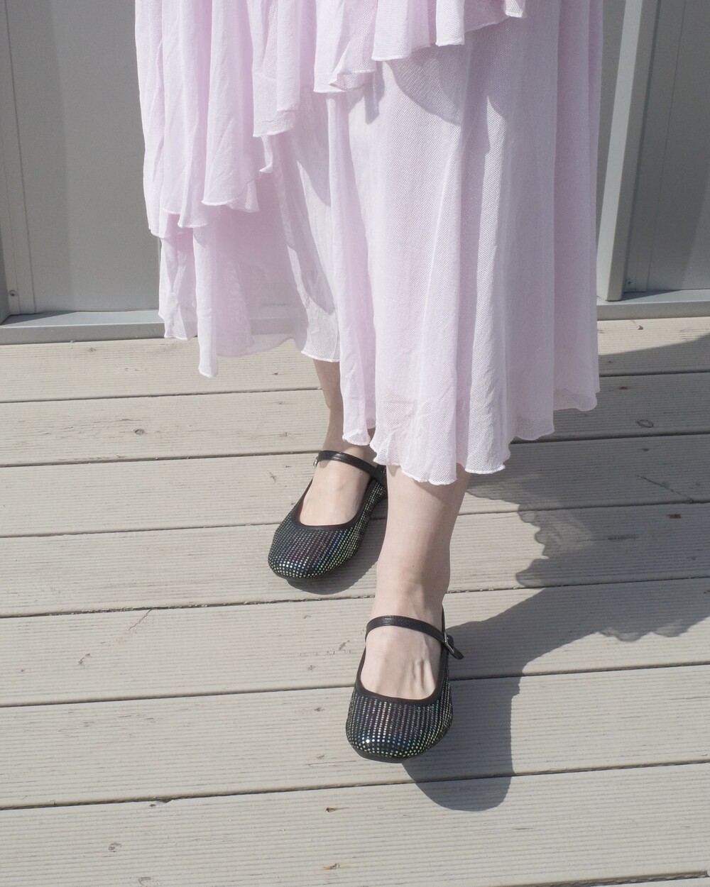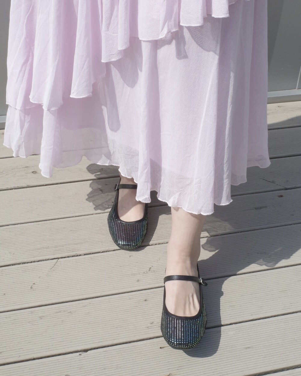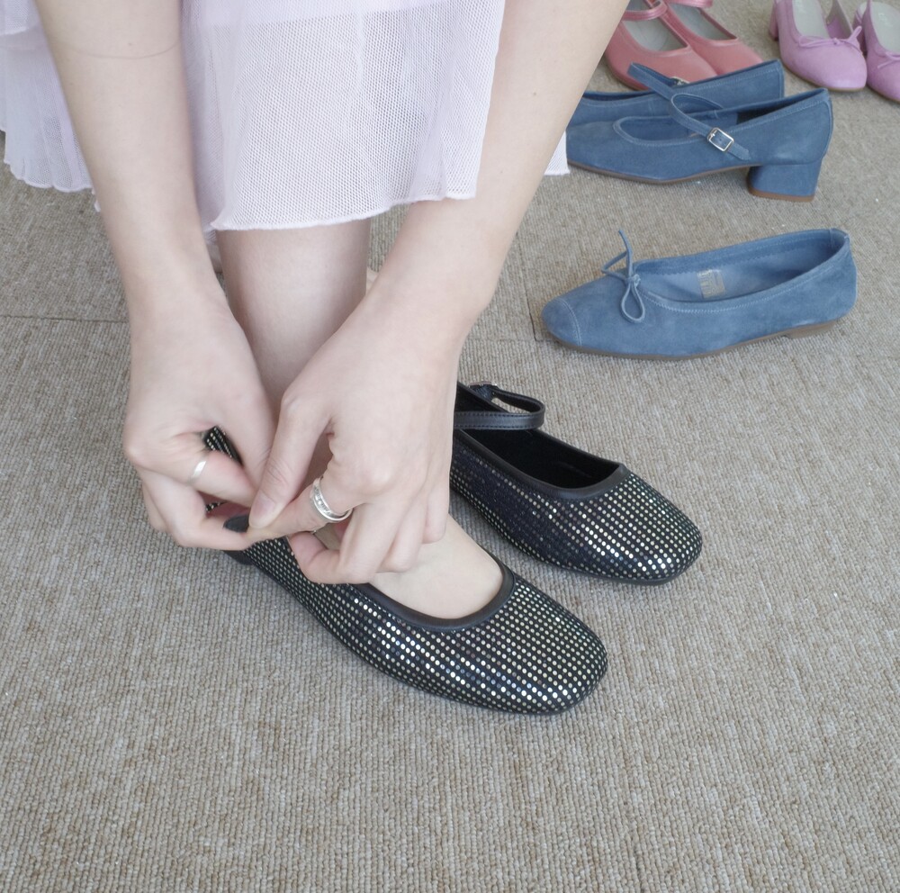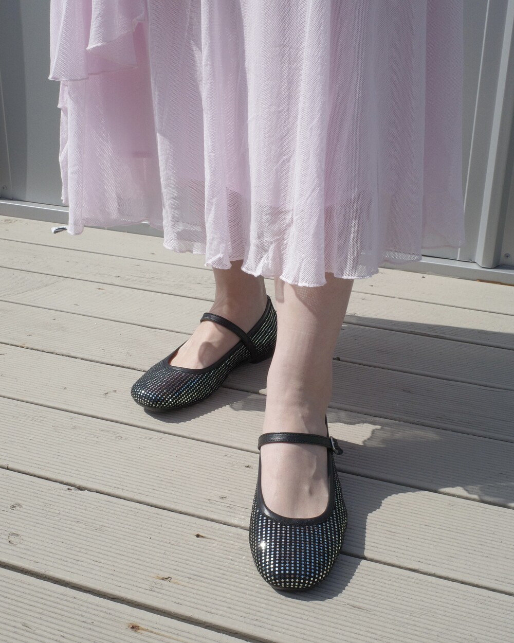 앞코 부분이 스퀘어 디자인으로 발 쉐잎을 더욱 가늘고 길어 보이게 만들어주고, 스트랩 부분이 두껍지 않아 투박한 느낌 없이 메리제이만의 페미닌한 느낌을 잘 살려줍니다.