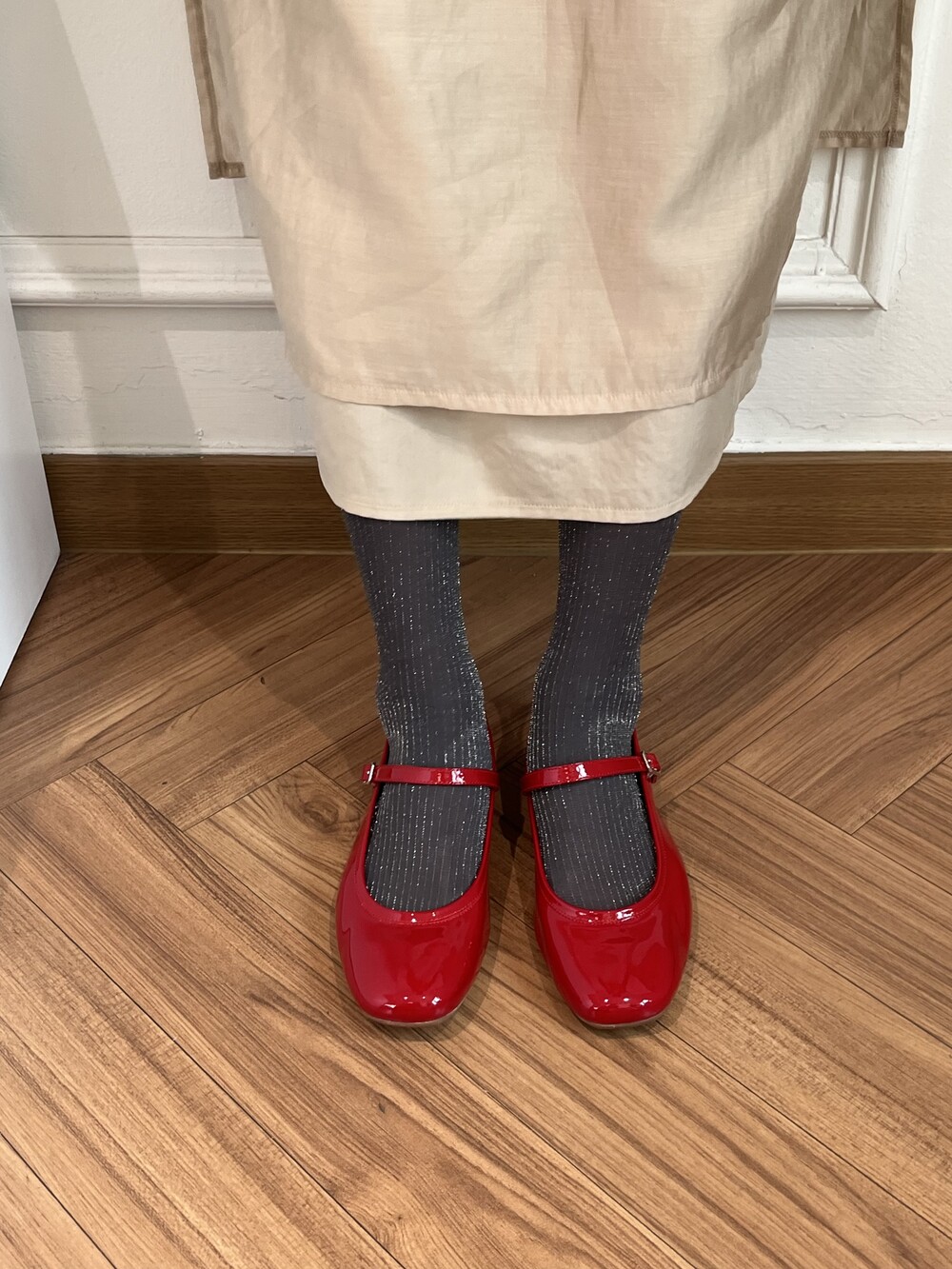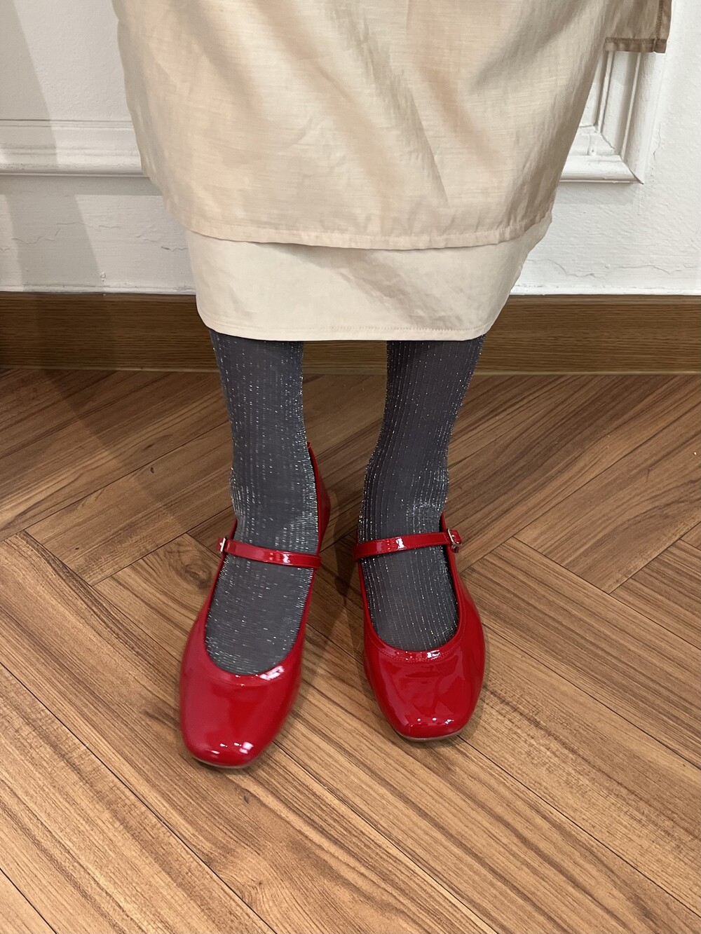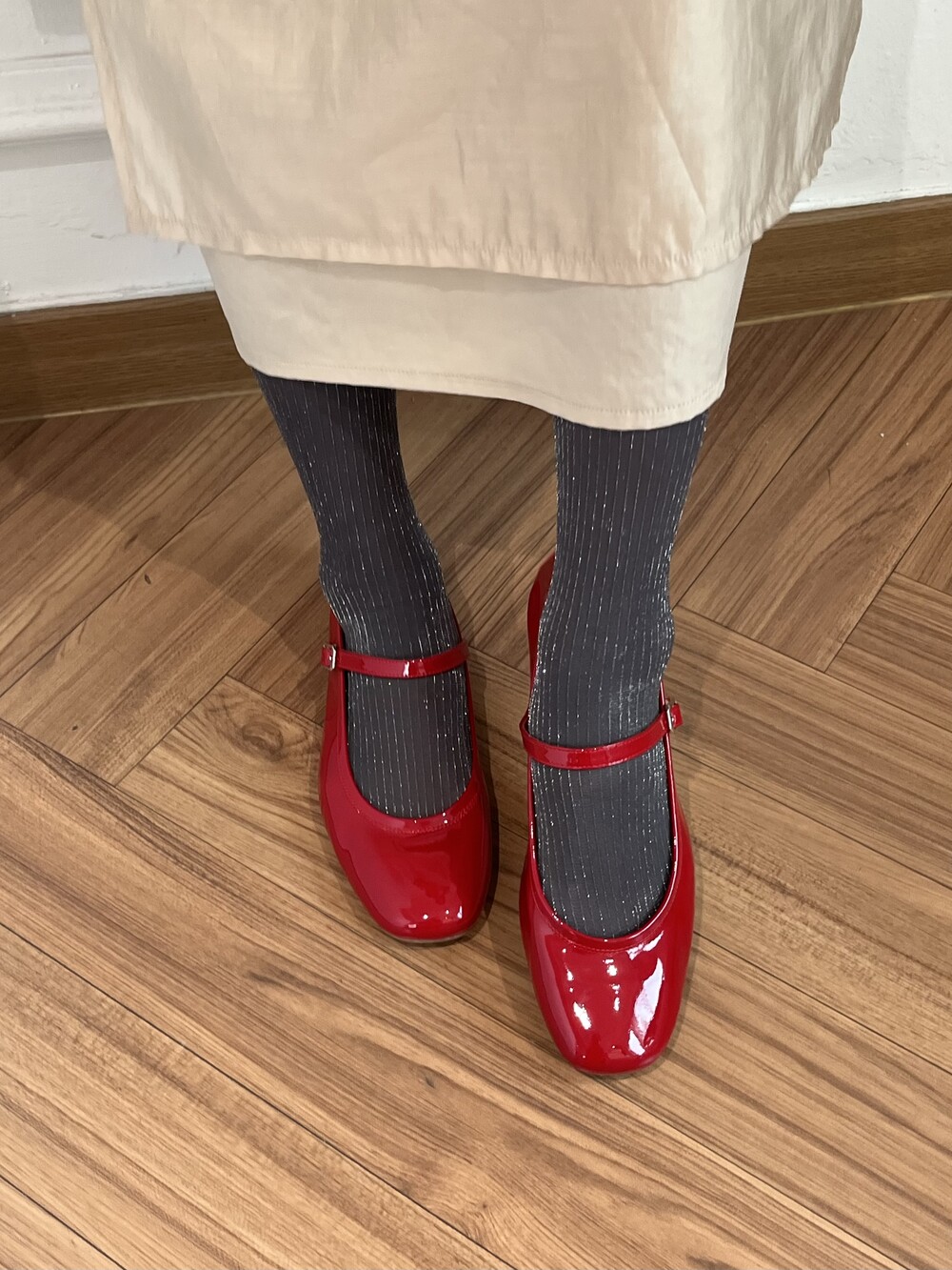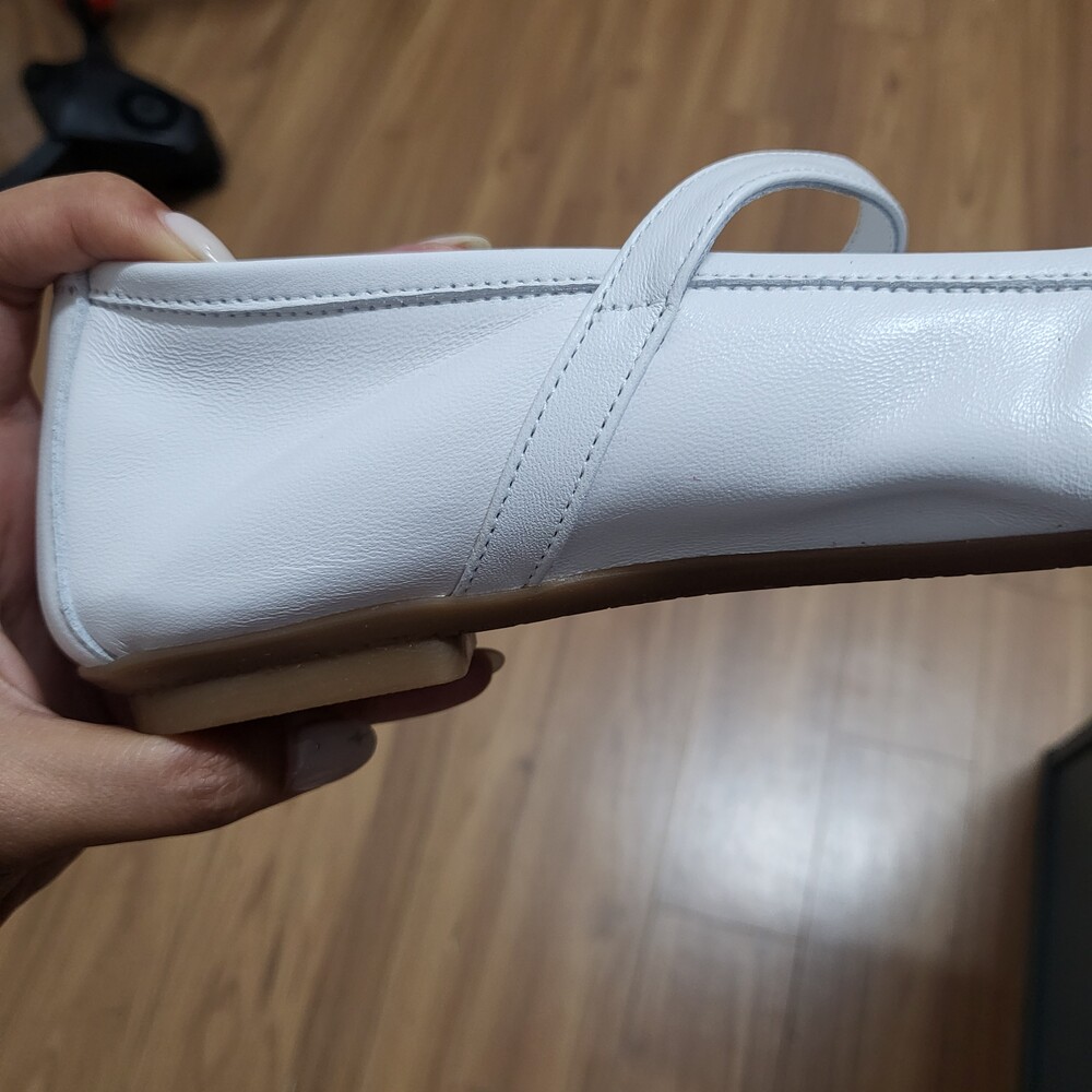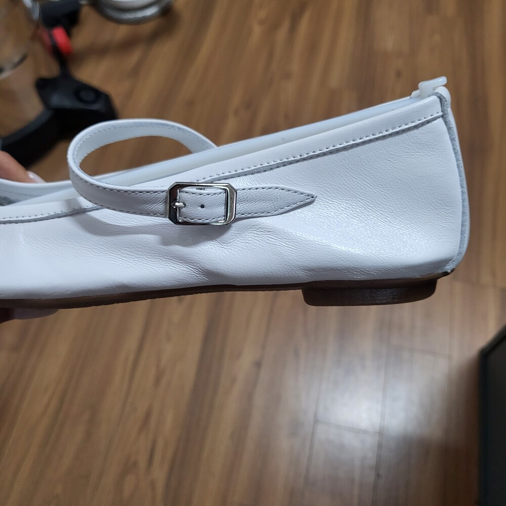 앞코 부분이 스퀘어 디자인으로 발 쉐잎을 더욱 가늘고 길어 보이게 만들어주고, 스트랩 부분이 두껍지 않아 투박한 느낌 없이 메리제이만의 페미닌한 느낌을 잘 살려줍니다.