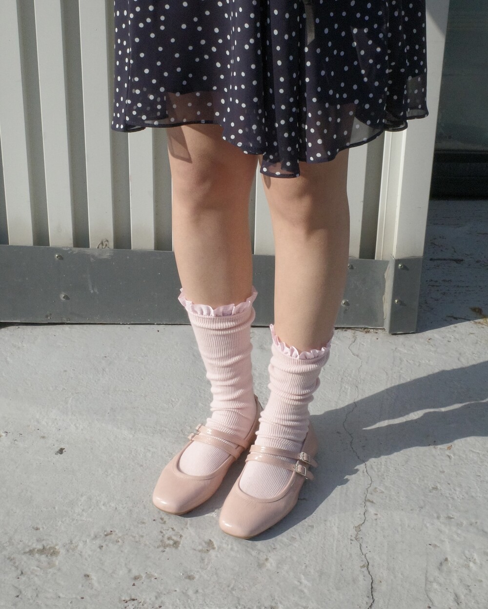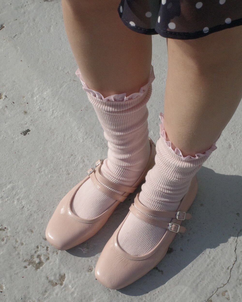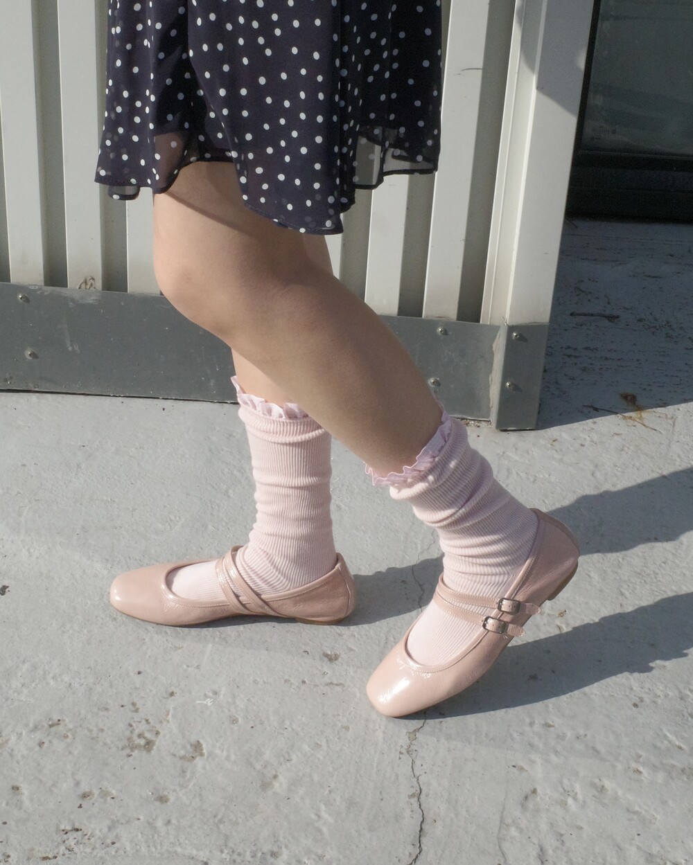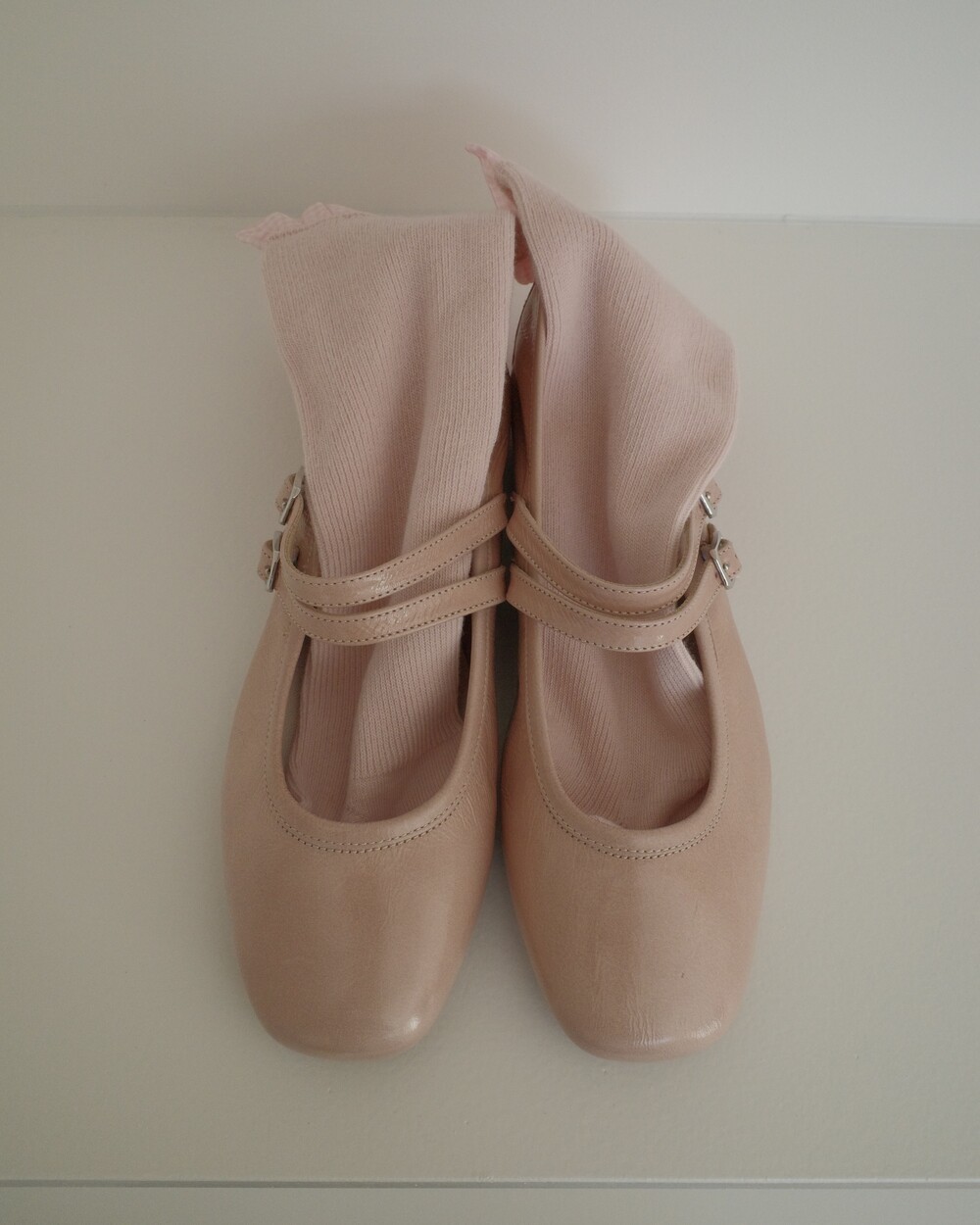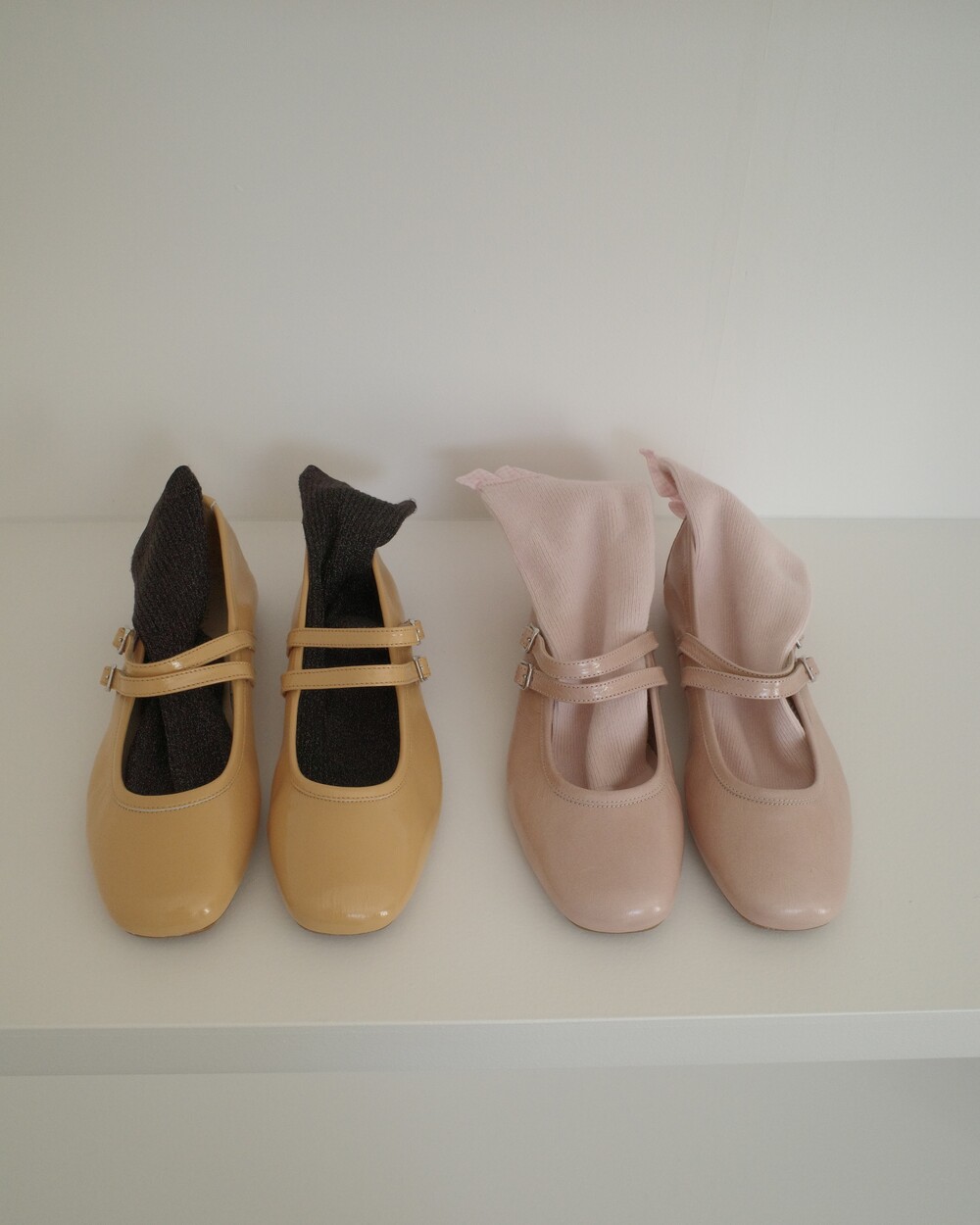 Honor 모델과 같은 쉐입에 스트랩이 하나 더 추가된 디자인으로, 앞코 부분이 스퀘어 형태라 발 쉐잎을 더욱 가늘고 길어 보이게 만들어주며, 스트랩 부분이 두껍지 않아 투박한 느낌 없이 메리제인만의 페미닌한 느낌을 잘 살려줍니다. 투스트랩으로 더욱 귀엽고 키치한 매력이 느껴지는 모델입니다.