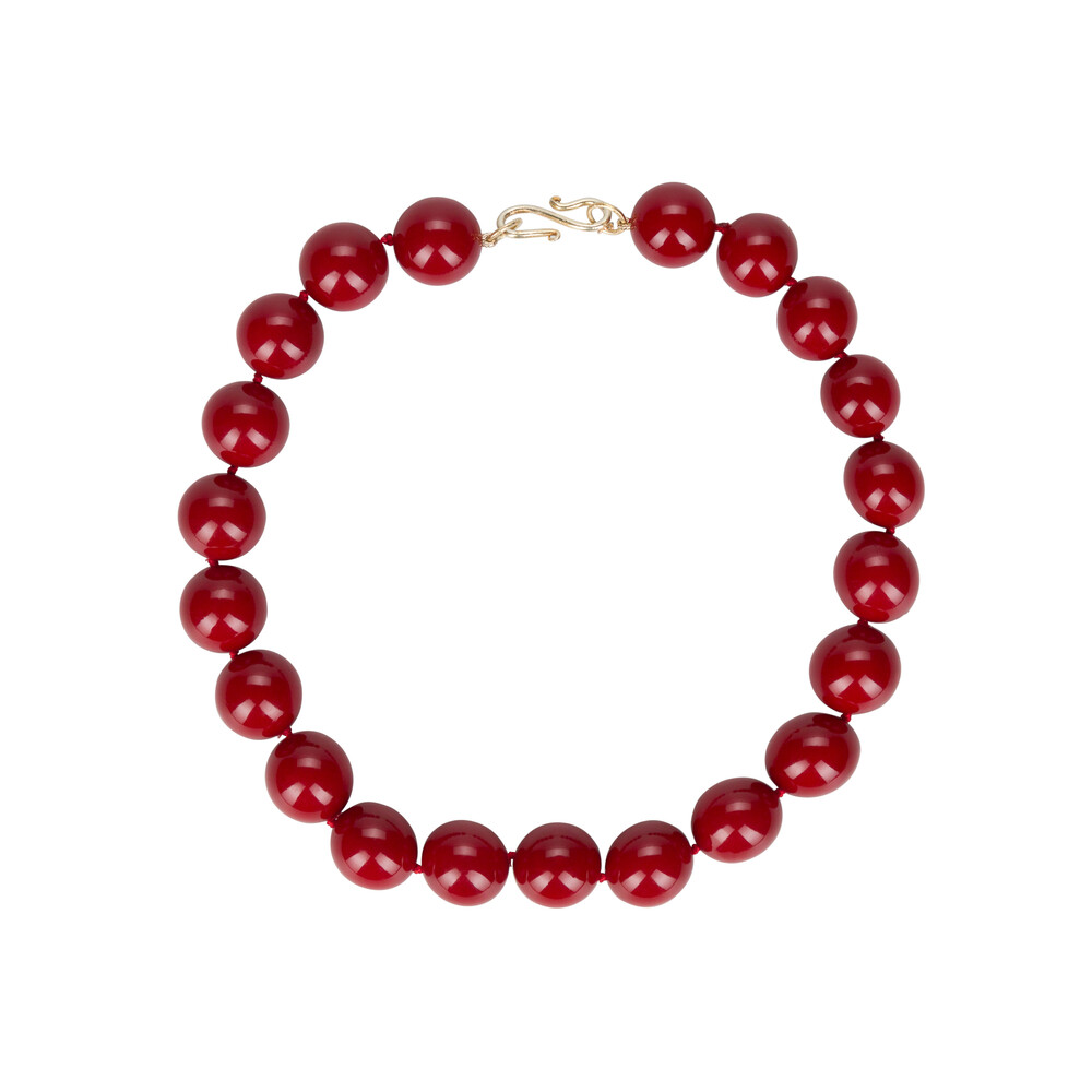 자개 진주에 레드 컬러를 입힌 Manon Necklace는 초커 기장으로, 룩에 아름다운 포인트를 줄 수 있습니다.
