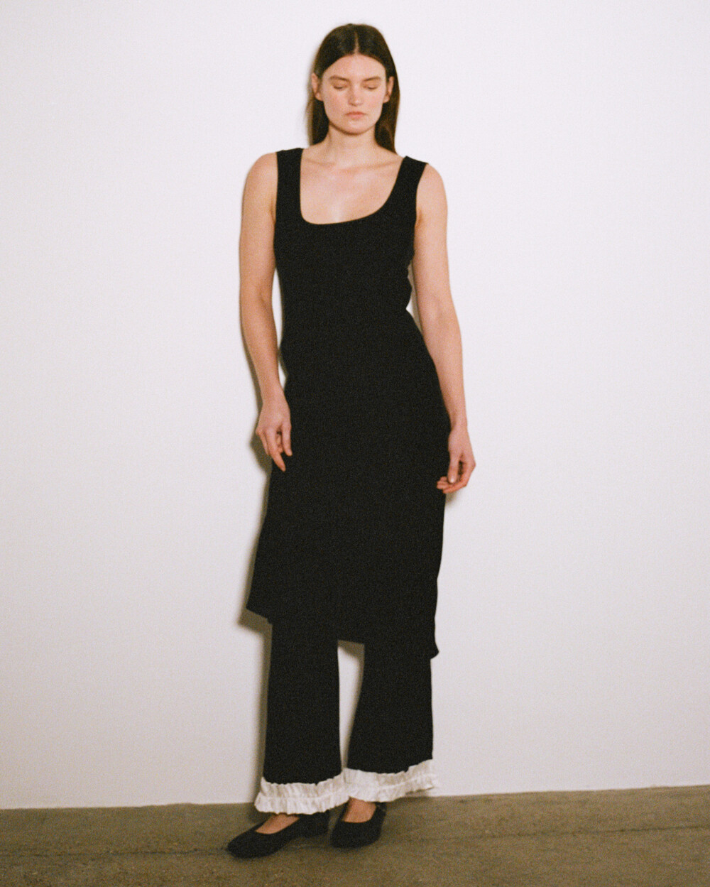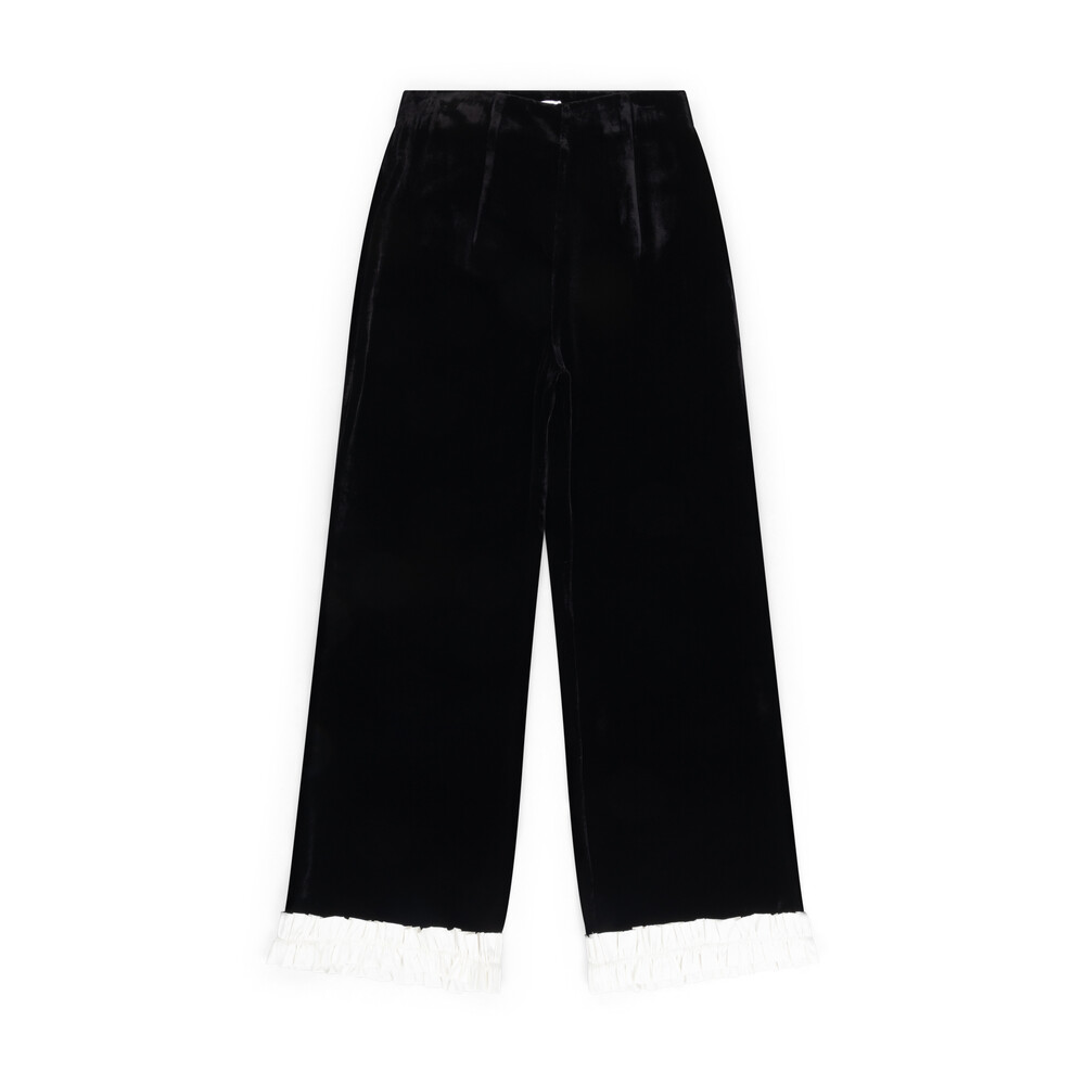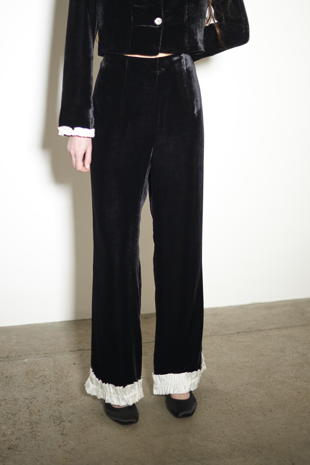밑단의 러플 디자인으로 하이의 사랑스러운 무드를 가득담은 Leo Trousers 입니다.