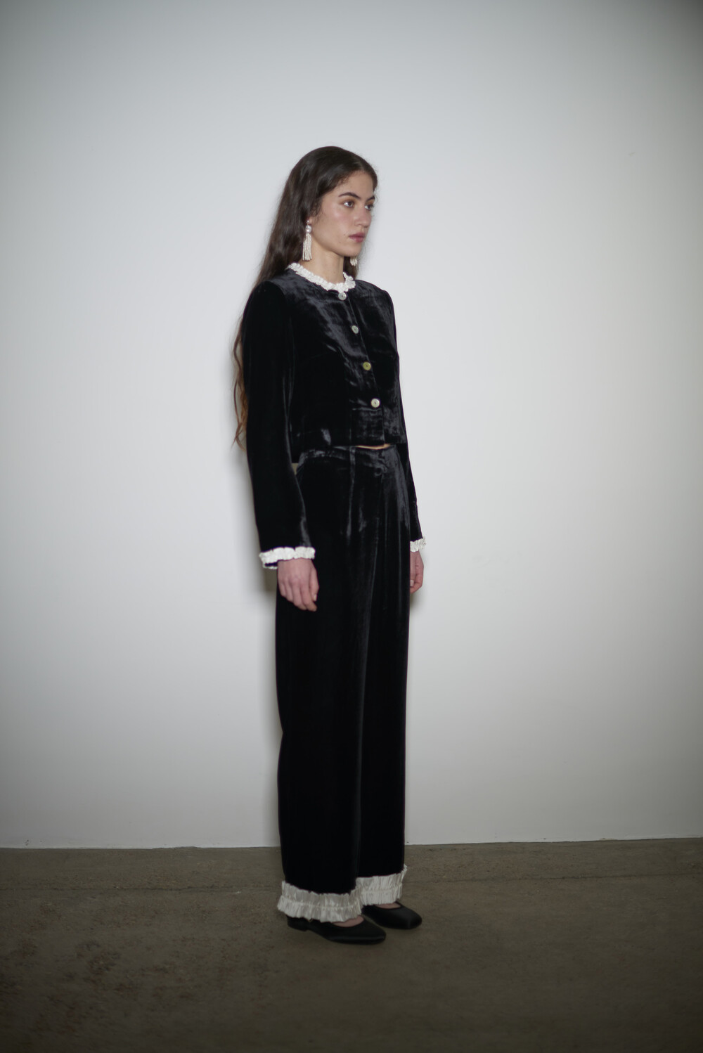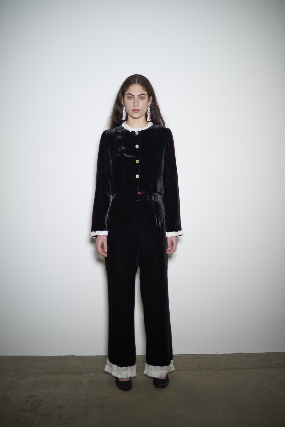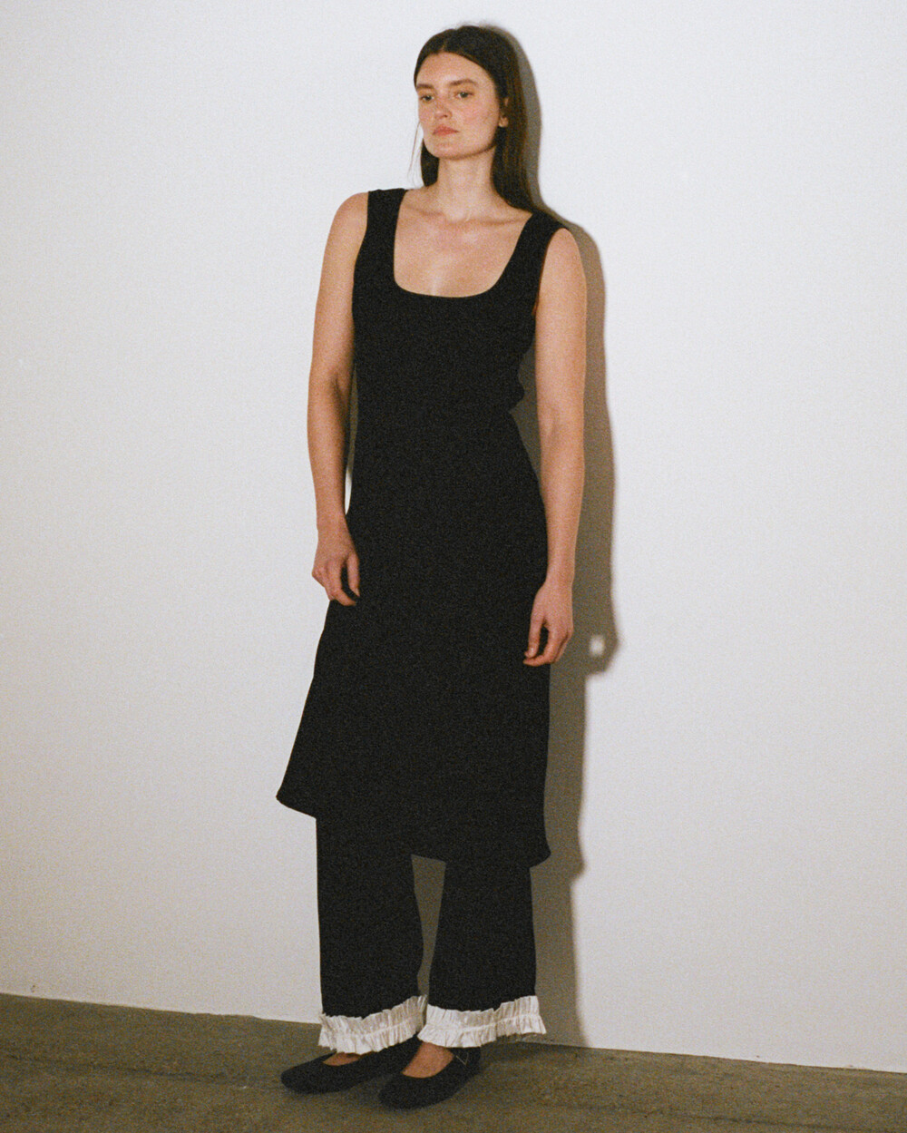 밑단의 러플 디자인으로 하이의 사랑스러운 무드를 가득담은 Leo Trousers 입니다.