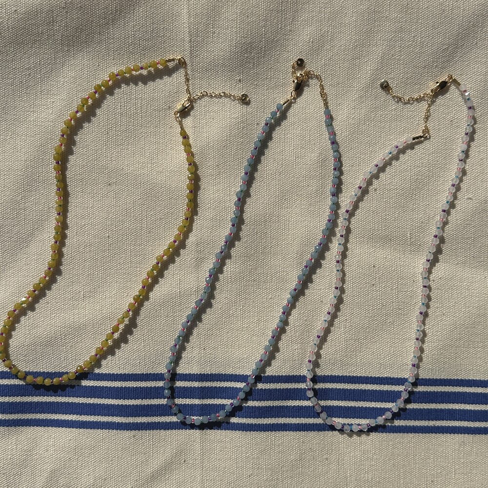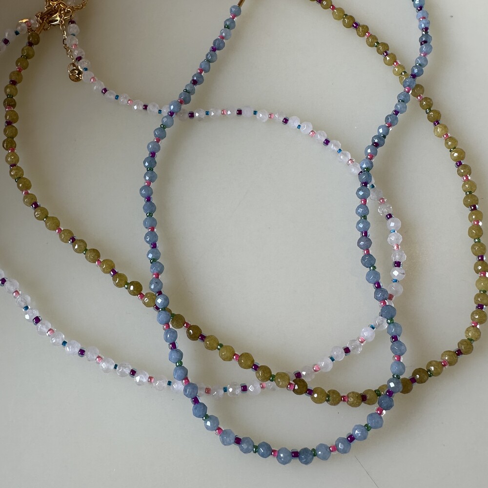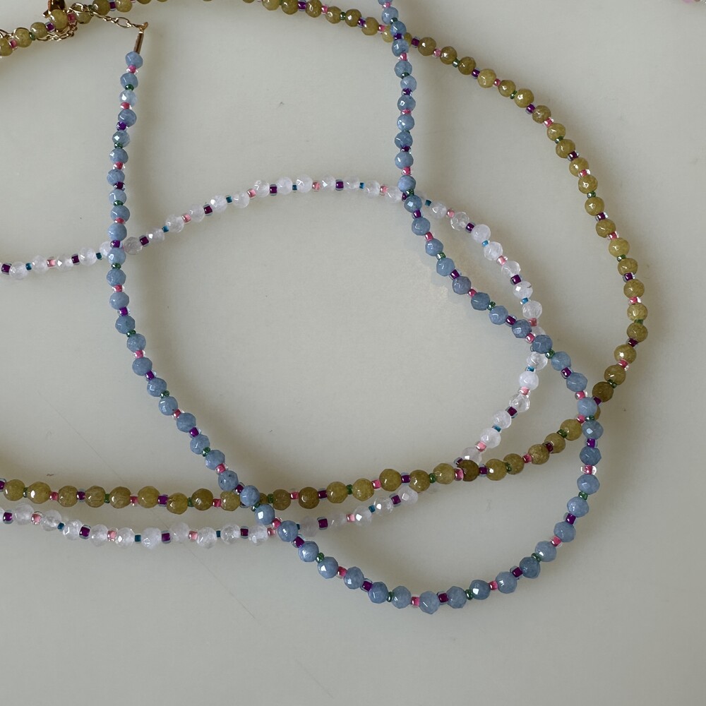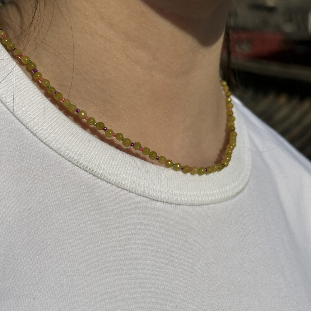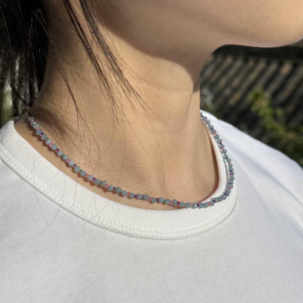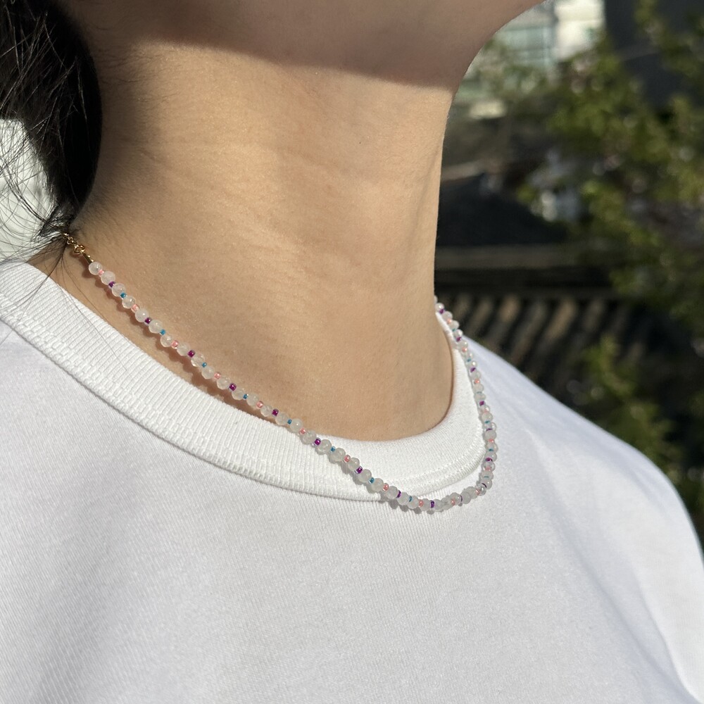 귀여운 배색 조합으로 구성된 원석 목걸이입니다.