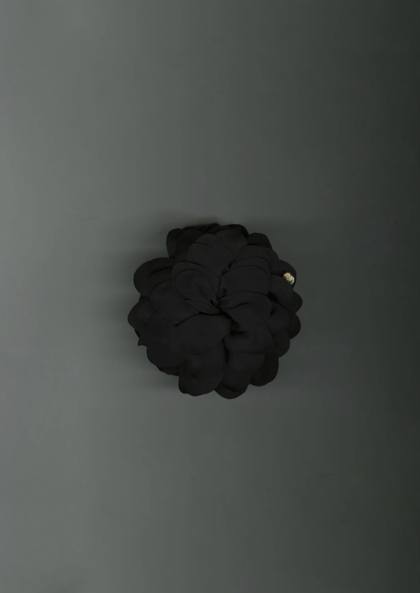 - BLACK FLOWER ON SATIN SCRUNCHIE