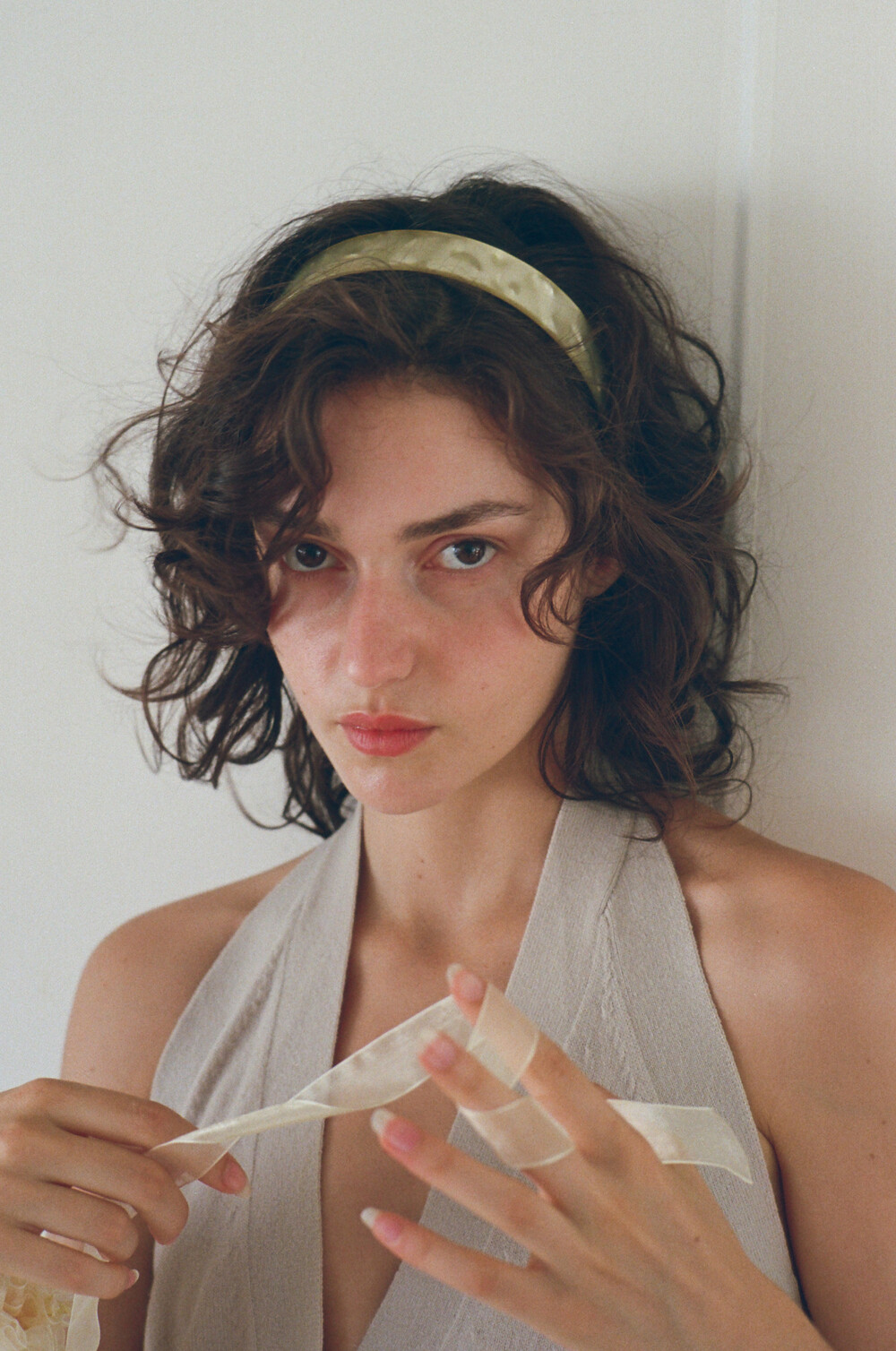 - 밝은 노란색 진주빛의 네이커 헤어밴드는 프랑스산 셀룰로오스와 식물성 아세테이트로 제작되었습니다.