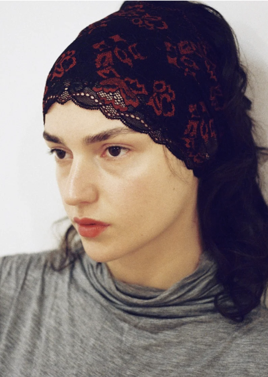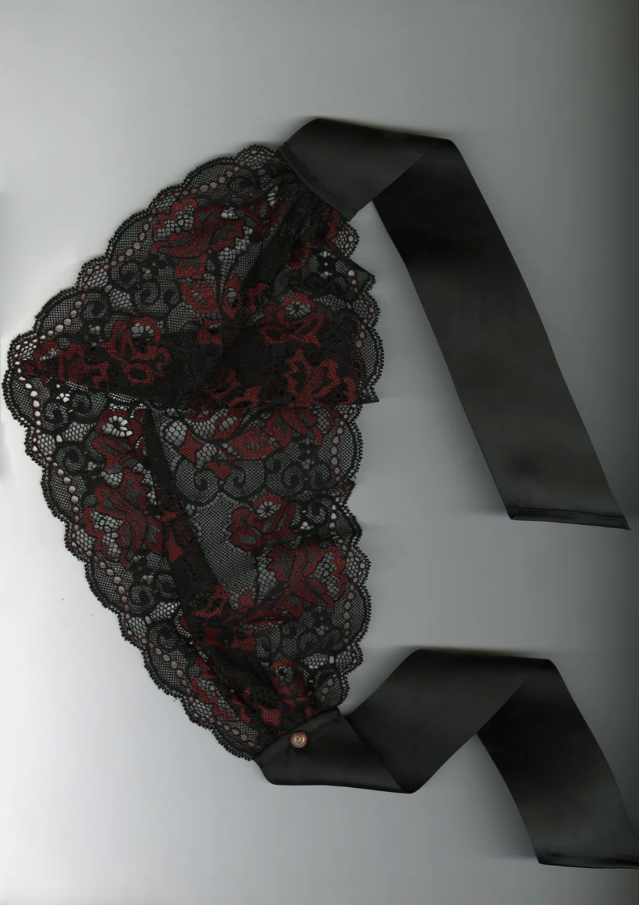 - Black and Red Bandeau in Stretch Lace, Gathered on Satin Ribbon