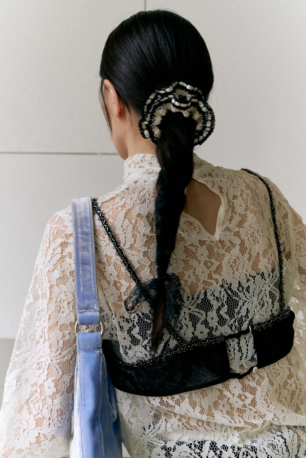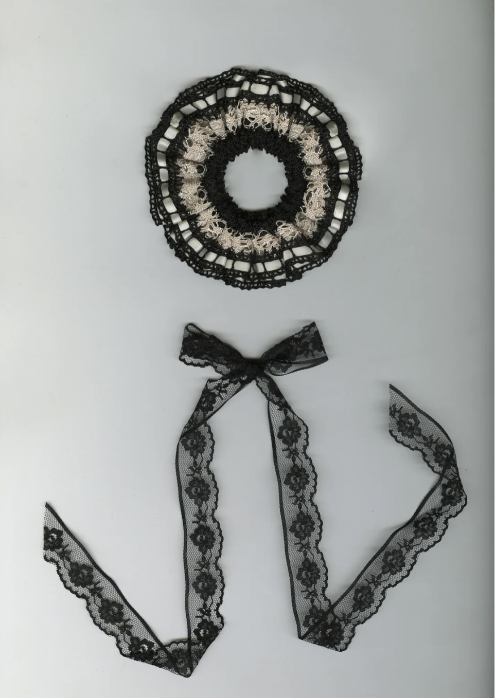 - Black and White Lace Scrunchie with Lace Ribbon, To be worn together or separately