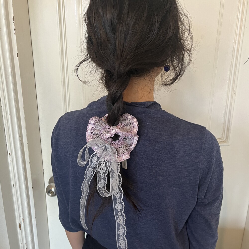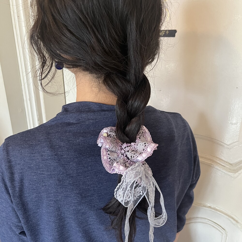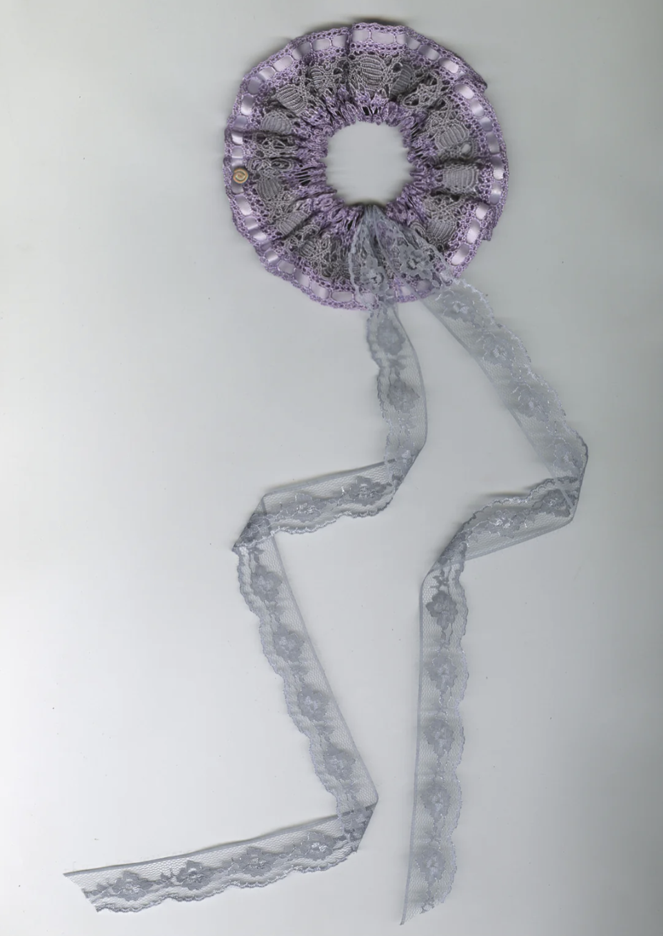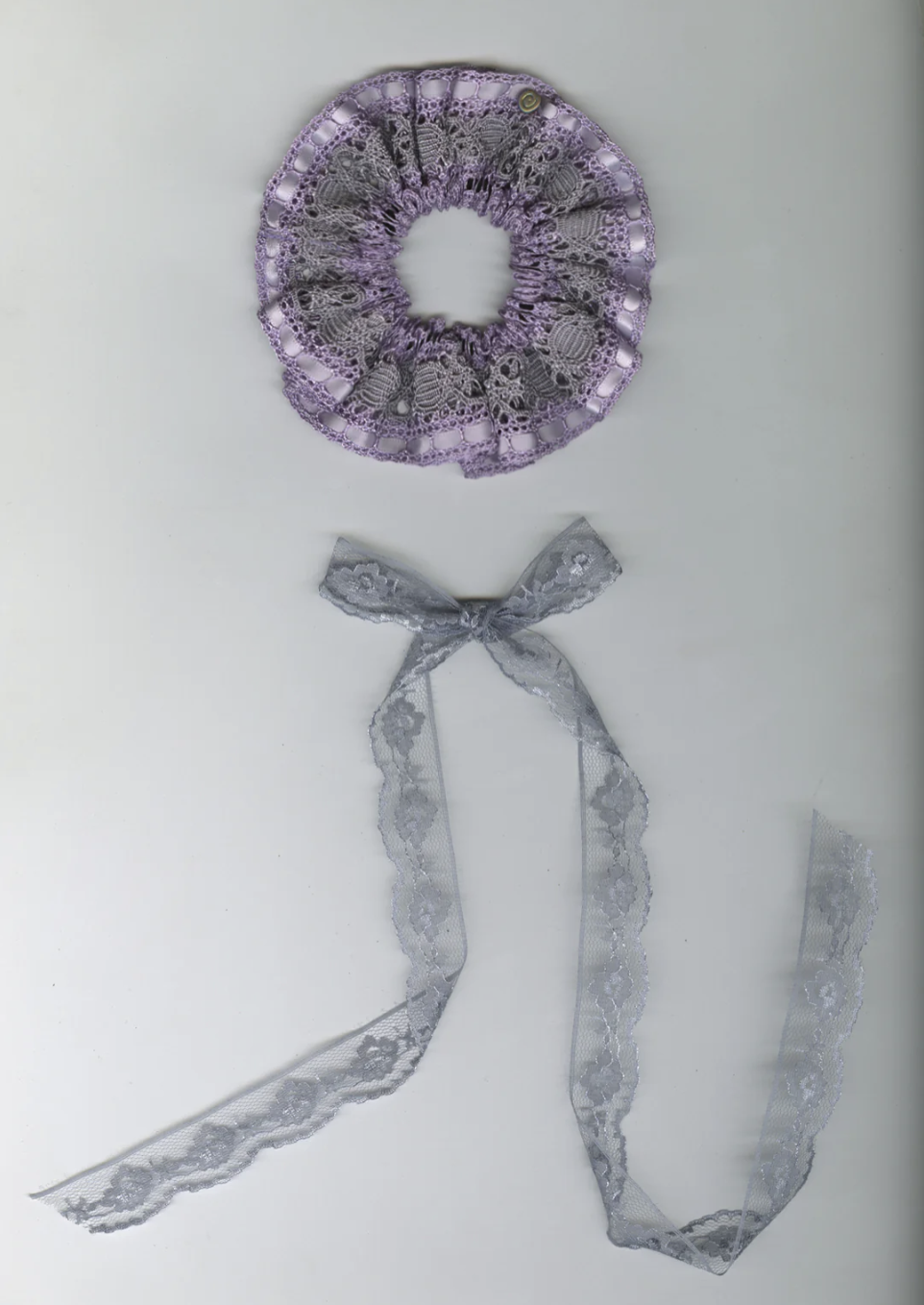 - Purple and Grey Lace Scrunchie with Lace Ribbon, To be worn together or separately