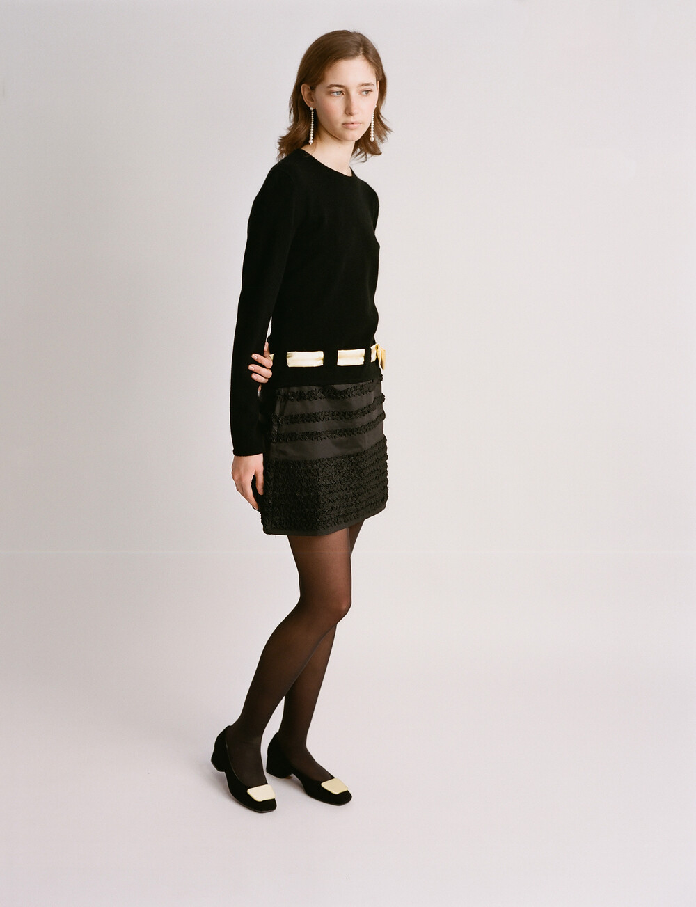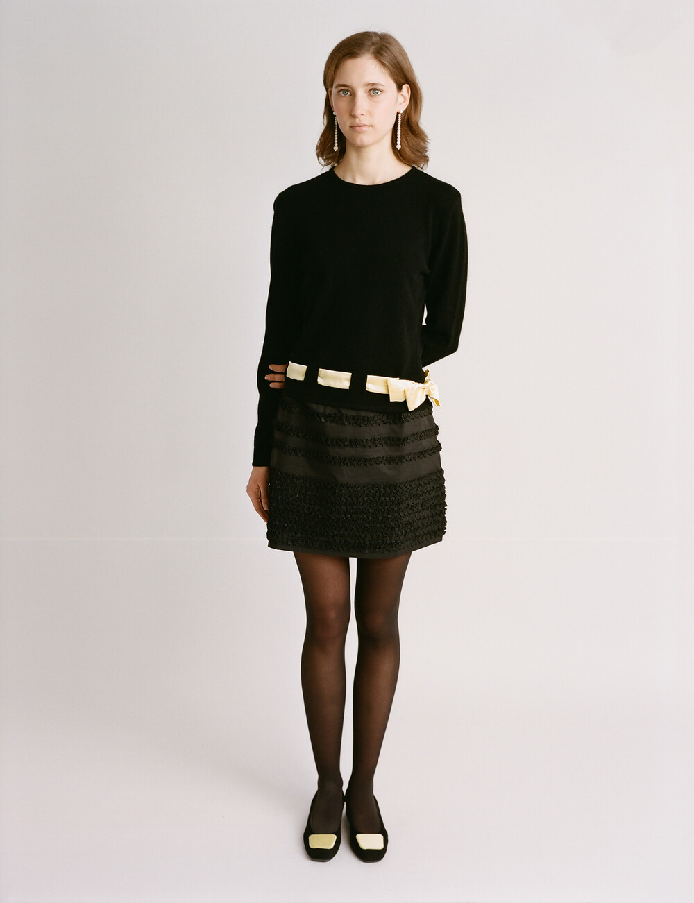 밑단의 리본 타이 포인트로 로맨틱한 무드를 잔뜩 담은 Nico Jumper 입니다.