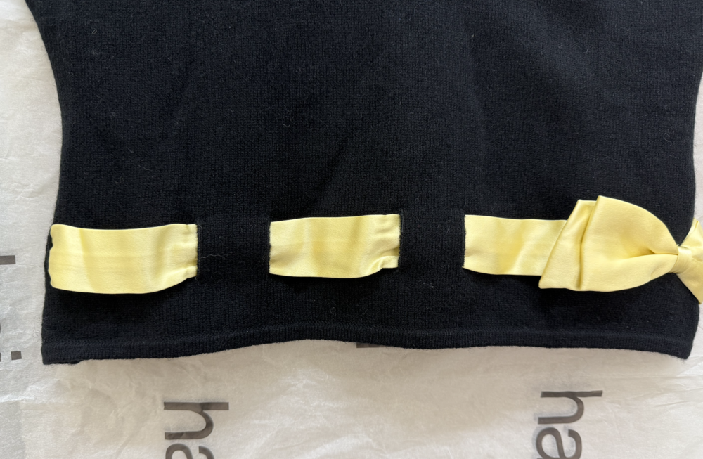 *밑단의 리본이 몸판에 부착된 디자인의 제품으로, 착용 시 밑단 늘어남에 한계가 있습니다. 따라서 평소 착용하시는 사이즈보다 다소 작게 피팅 되실 수 있습니다.