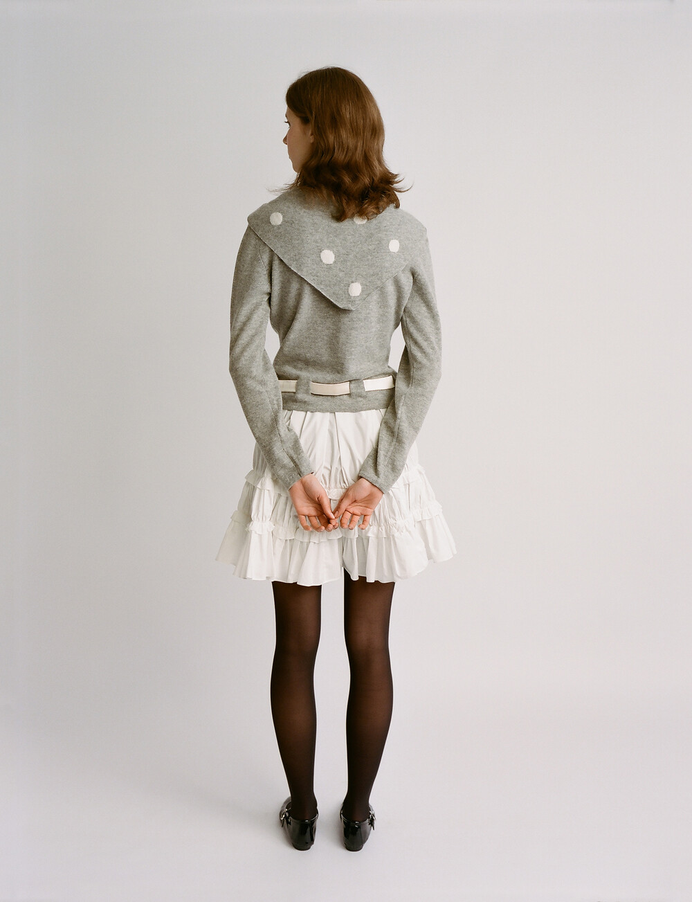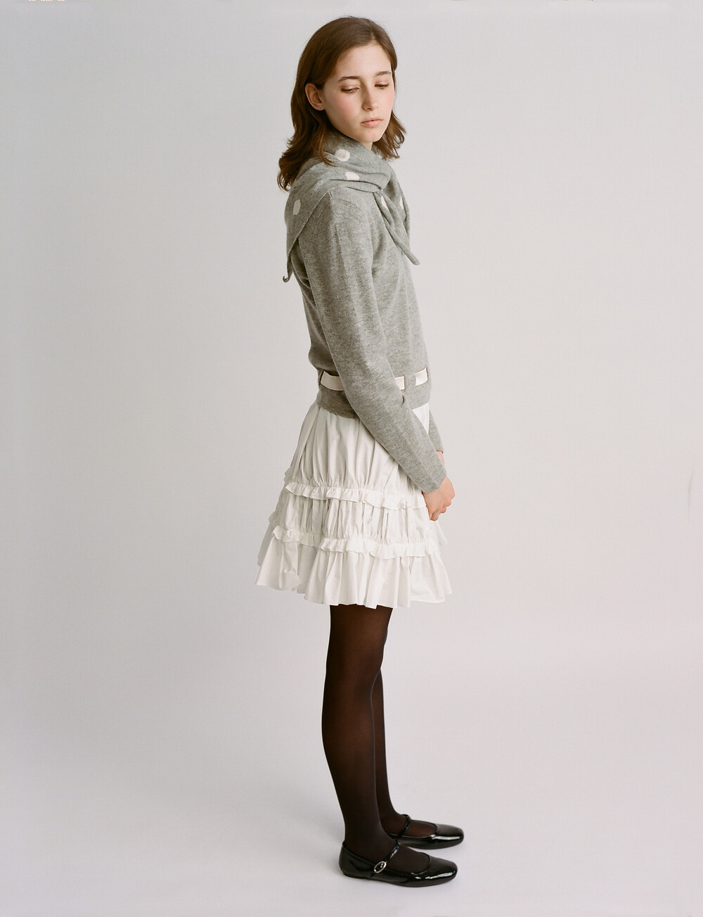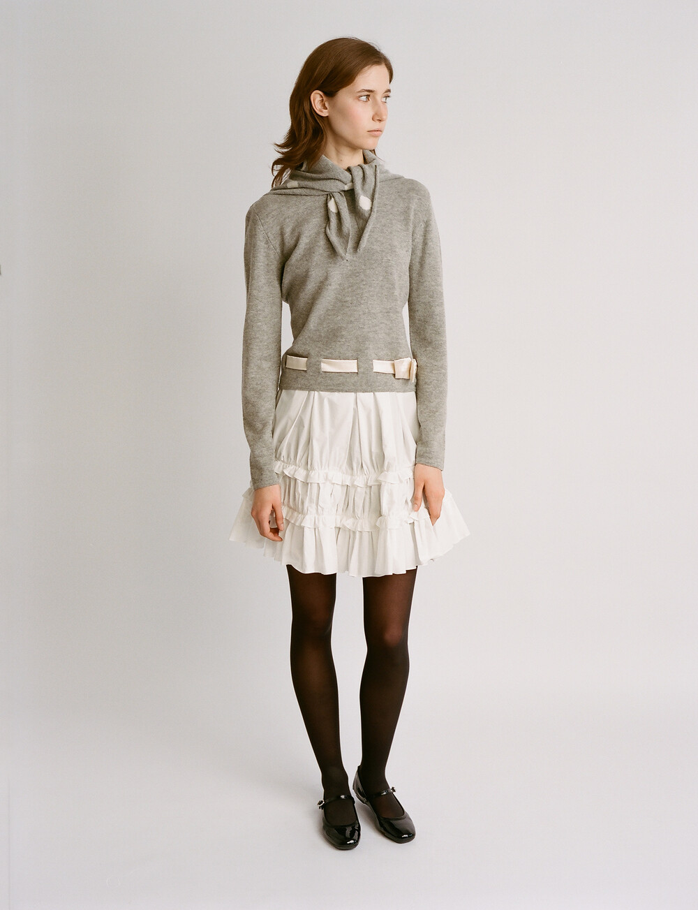밑단의 리본 타이 포인트로 로맨틱한 무드를 잔뜩 담은 Nico Jumper 입니다.