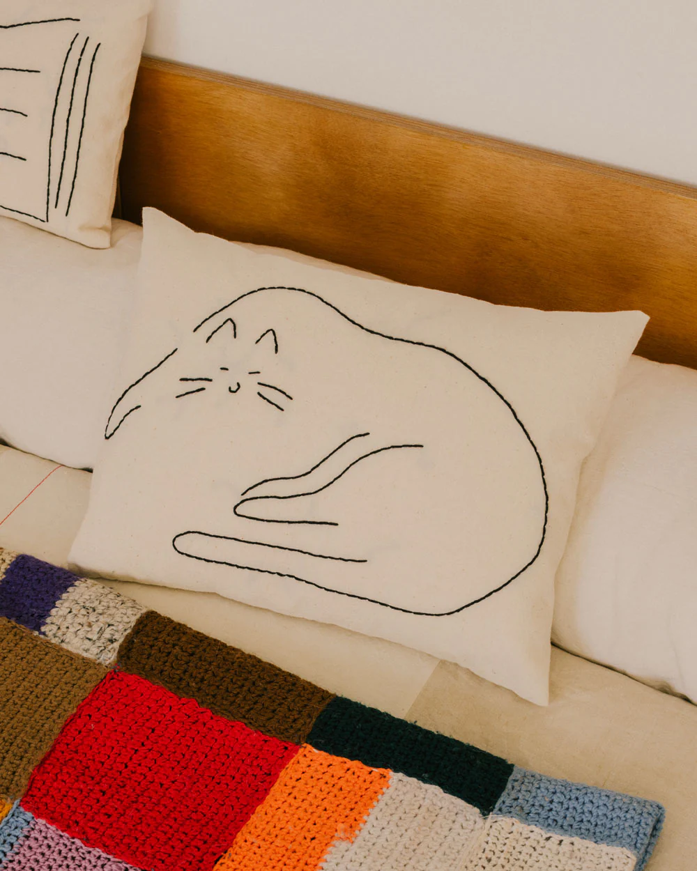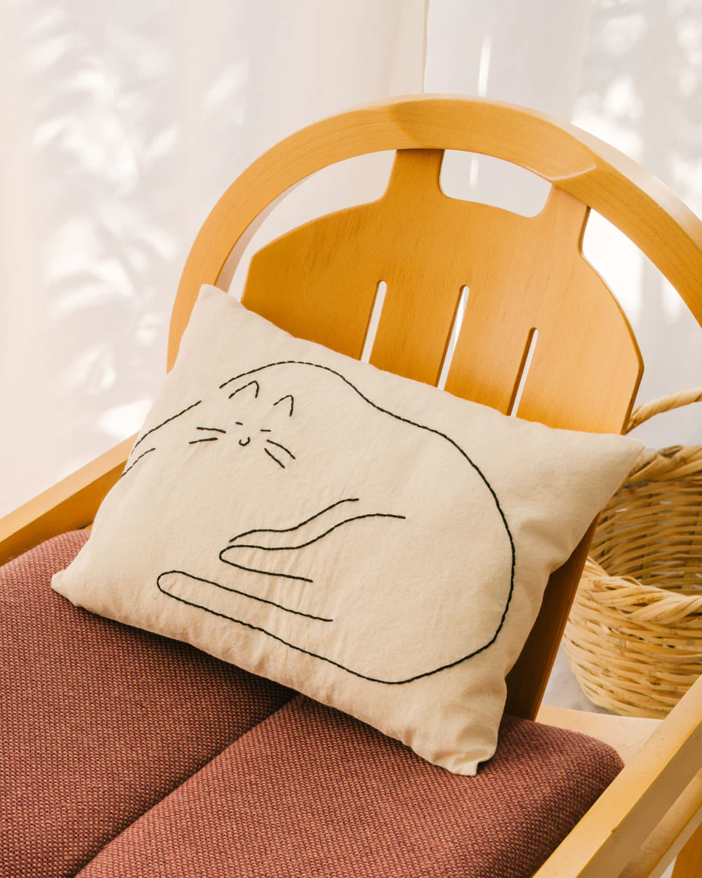 정물화 컬렉션에서 선보이는 자수 고양이 쿠션입니다.