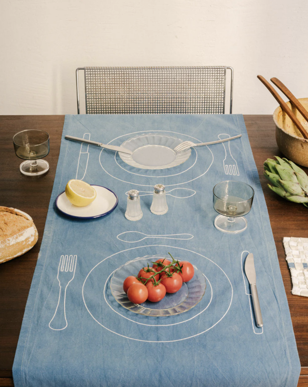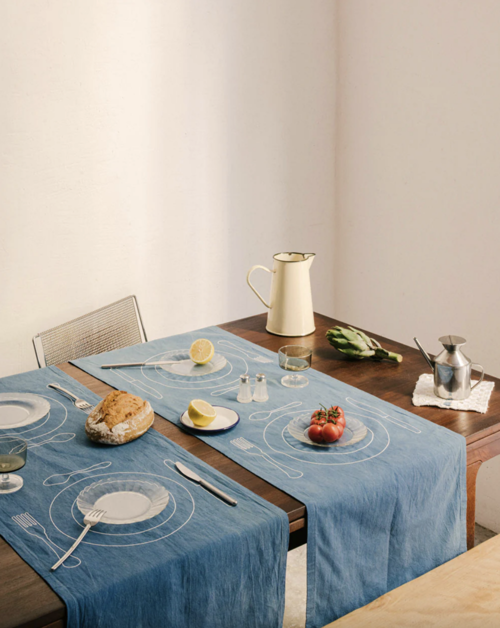 플레이트와 커틀러리가 자수로 새겨진 2인 버전의 플레이스 매트입니다.