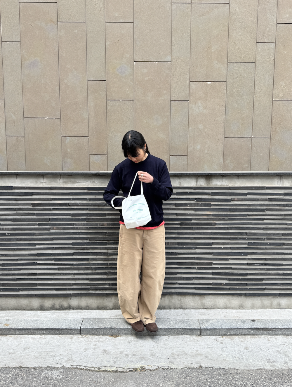 바닥면이 있어 물건을 안정감 있게 수납할 수 있고, 가벼운 옷차림에 숄더로 맬 수 있는 핸들 길이로 실용성을 더했습니다.