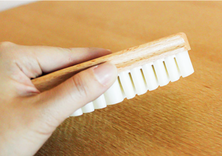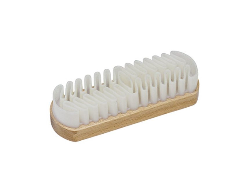 - 지그재그로 심어진 고무가 가죽에 손상을 주지 않으면서 가벼운 오염을 제거해줍니다.