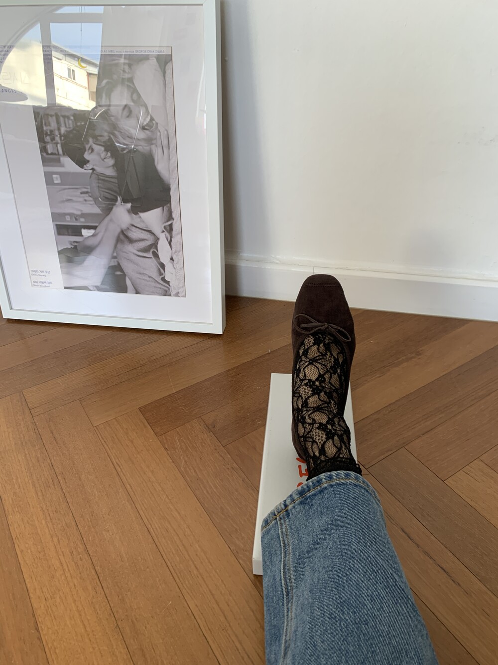 Reqins의 시그니처 모델인 Harmony 모델은 앞코 절개 포인트와 살짝 스퀘어진 앞코 모양이 특징이며, 발등을 적당히 감싸주어 발 모양을 굉장히 예쁘게 잡아줍니다.