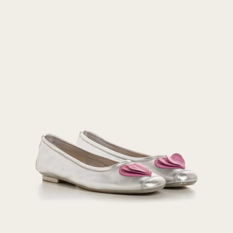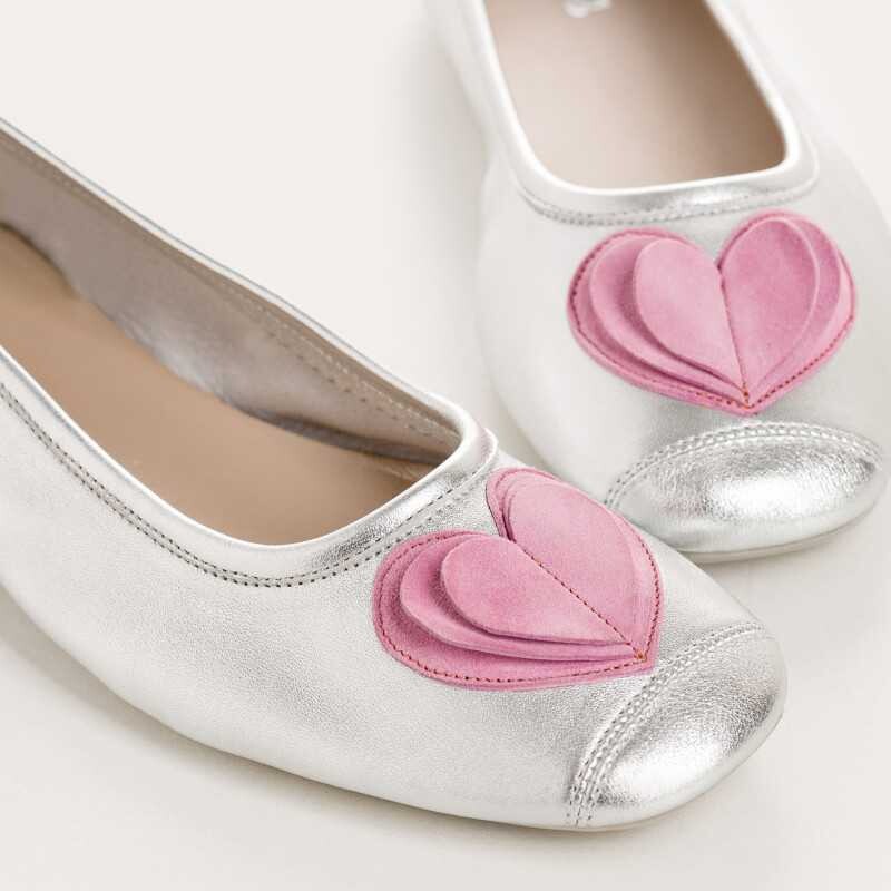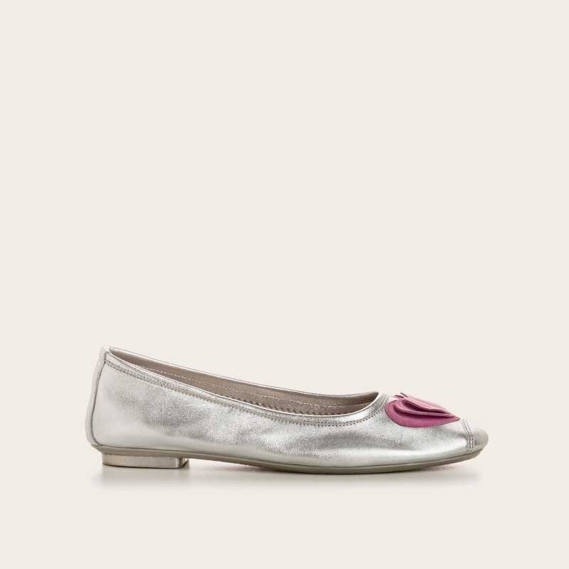 흐꺙의 베스트 모델인 Harmony 디자인에 스웨이드 소재로 제작된 하트 모양 코르사쥬로 포인트를 준 모델입니다. 실버와 핑크 컬러의 조합이 매우 잘어우러지며, 러블리한 무드가 느껴집니다. 데님과 함께 매치해보세요!