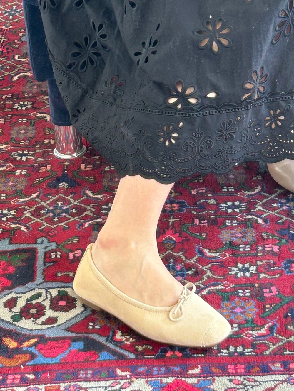 페일하고 여성스러운 느낌의 베이지 컬러입니다. 봄이나 여름엔 맨발에, 가을이나 겨울엔 패턴이 강한 양말과 신으면 예쁜 상품입니다.