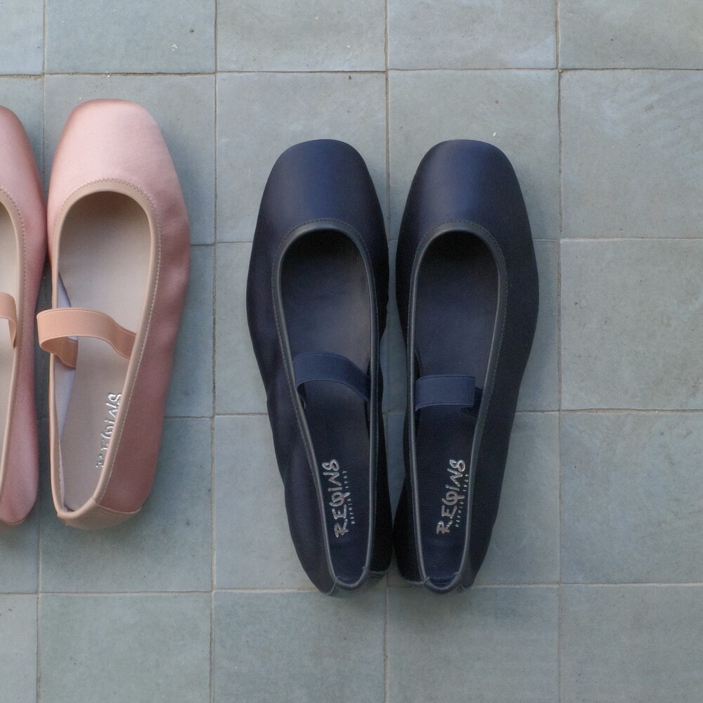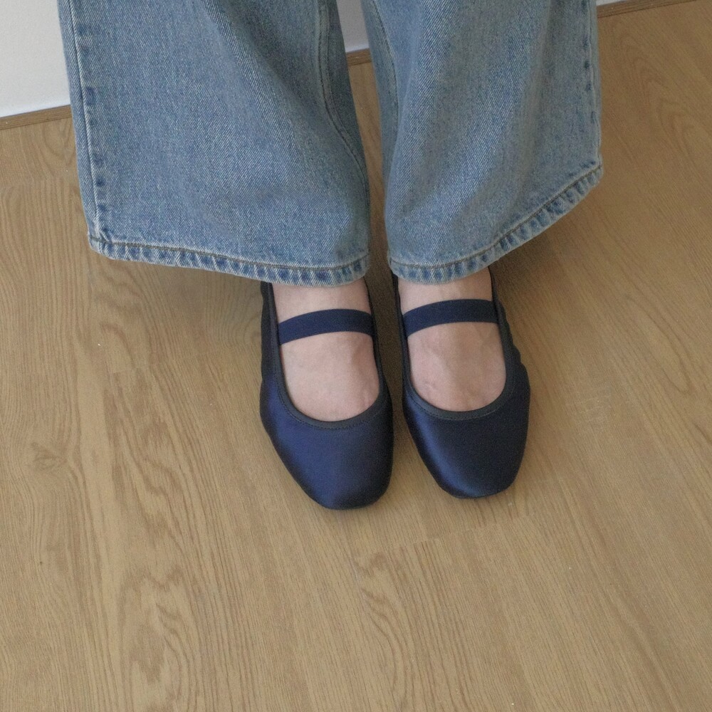 새틴소재를 활용한 플랫슈즈로 마치 발레리나 토슈즈를 연상시키는 러블리한 무드의 제품입니다.