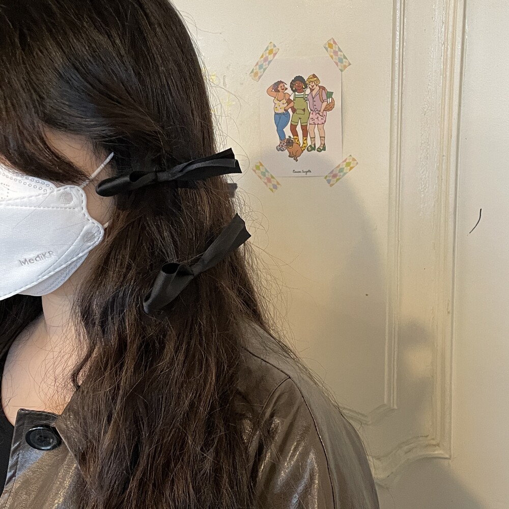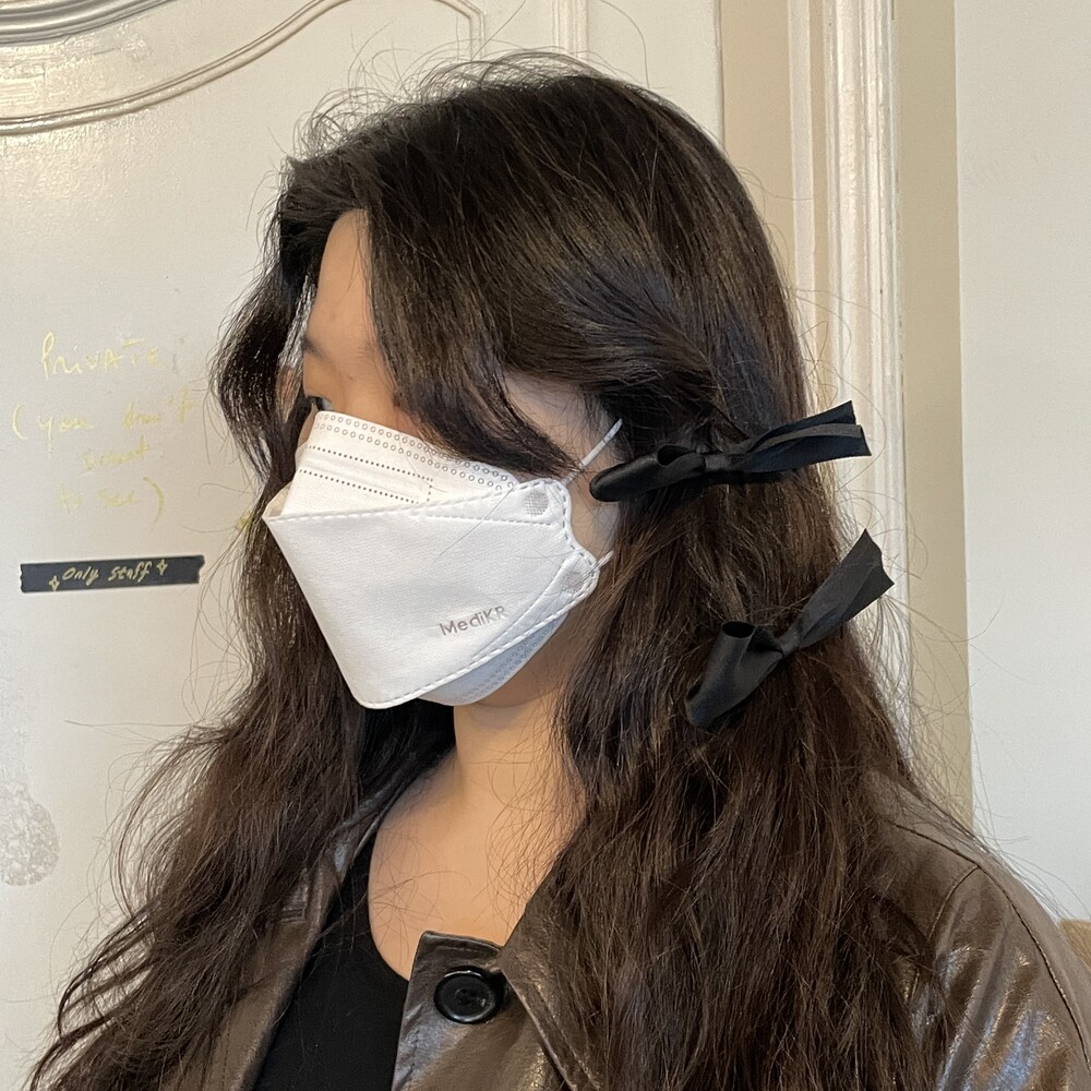 두개의 리본핀이 한 세트인 제품이며 양옆으로 착용하는 것을 추천드립니다.