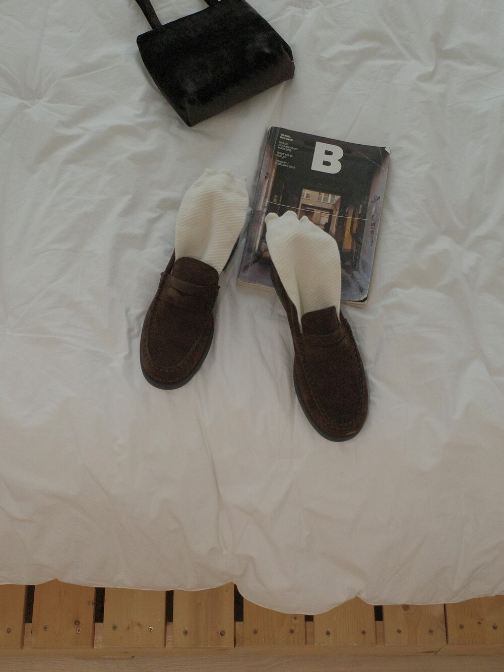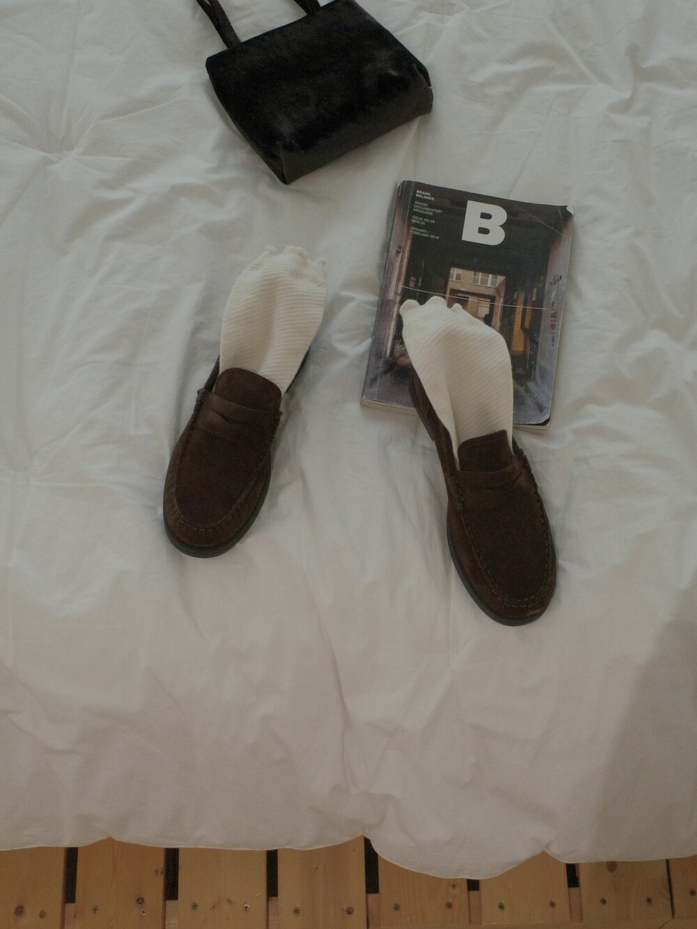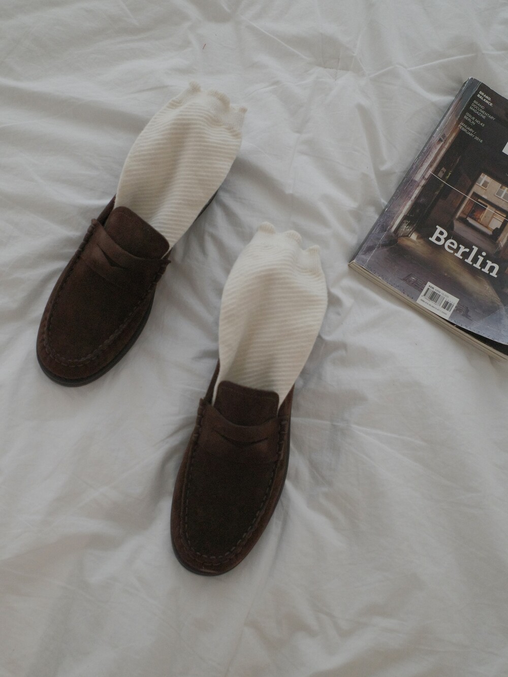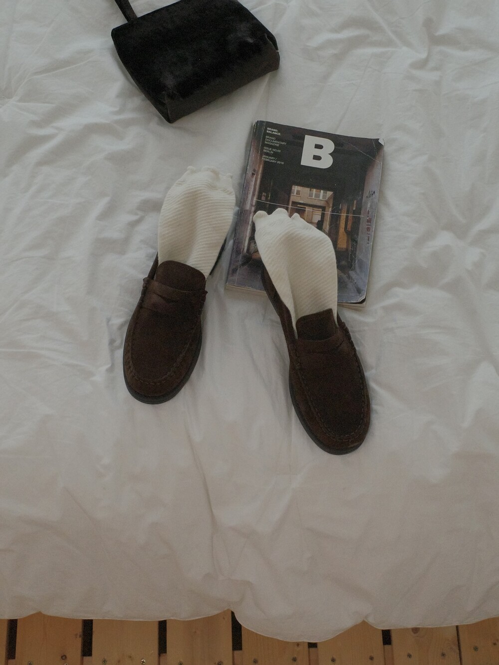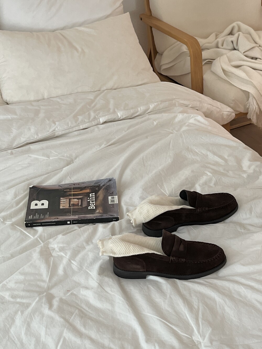 편안하게 즐길 수 있는 브라운 컬러의 스웨이드 가죽이 주는 부드러운 질감과 군더더기 없는 실루엣이 매력을 더합니다.