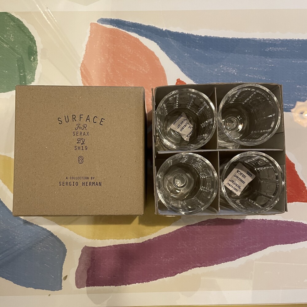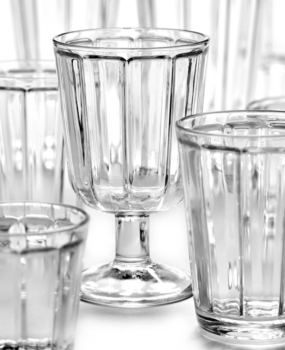 Glasses are used for drinking different kinds of beverages throughout the day, so I thought it was very important that you could have the choice to use them for whichever drink you desire, without compro- mising on style or class. Whether for wine or water, cocktails or sodas, juices or smoothies, coffee or tea ... the glasses must be fit for all. In close cooperation with the Serax design team, these beautiful, recognisable, original and super strong glasses have sprung to life. The thickness of the glass ensures optimal heat/cold insulation and the subtle dilution near the edges makes for a pleasant feeling when your lips kiss the glass. I also wanted the glasses to be stylish, original and different in a pleasant way, so we decided to design them inside-out: the outer surface is perfectly smooth, and surprisingly enough, the profiling is on the inside. I wouldn't want them any other way!