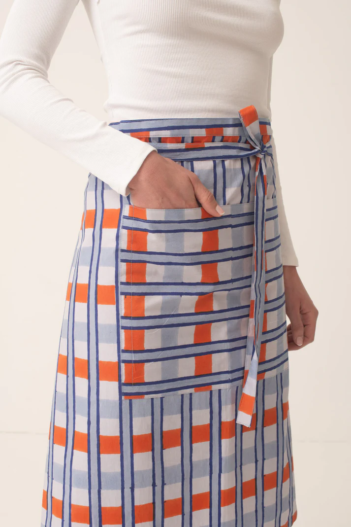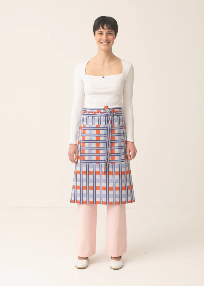 유기농 면 소재의 Mouron 앞치마는 인도 자이푸르의 전통 목판화 기법을 사용하여 수작업으로 제작되었습니다.