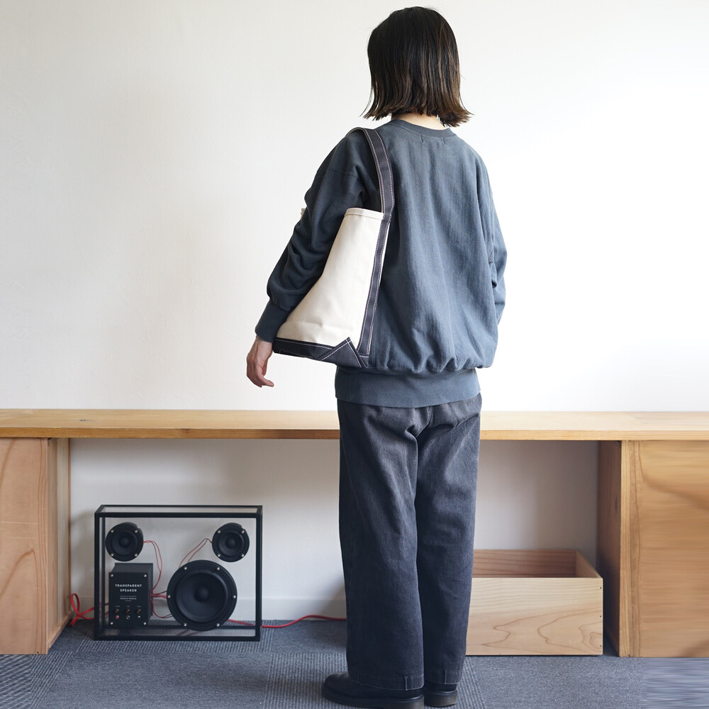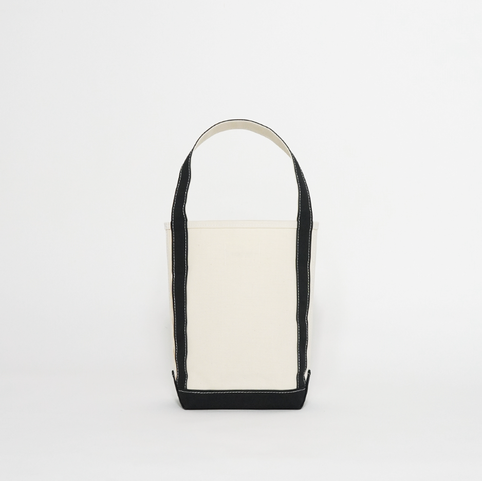 바게트를 위한 스몰 사이즈 토트백입니다. 스몰 사이즈는 A4 용지 파일을 넣기 딱 알맞은 사이즈로 생각해주시면 됩니다. 길이가 긴 물건들을 넣고 어깨에 멨을 때 더욱 편안한 착용감을 위해 손잡이는 가방 앞 부분에 부착되어있습니다.