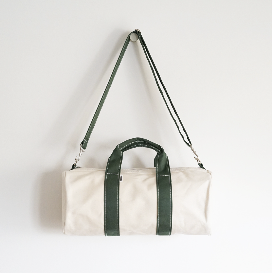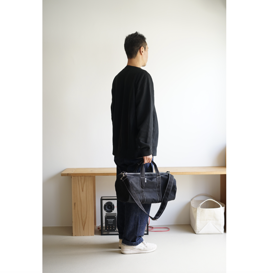 원통형 모양의 더플 백입니다. 기본 핸들 이외에 길이 조정 가능한 끈이 달려 있으며 분리 가능합니다. 라지 사이즈는 짐이 많을 때나 여행 시에도 사용할 수 있는 사이즈입니다