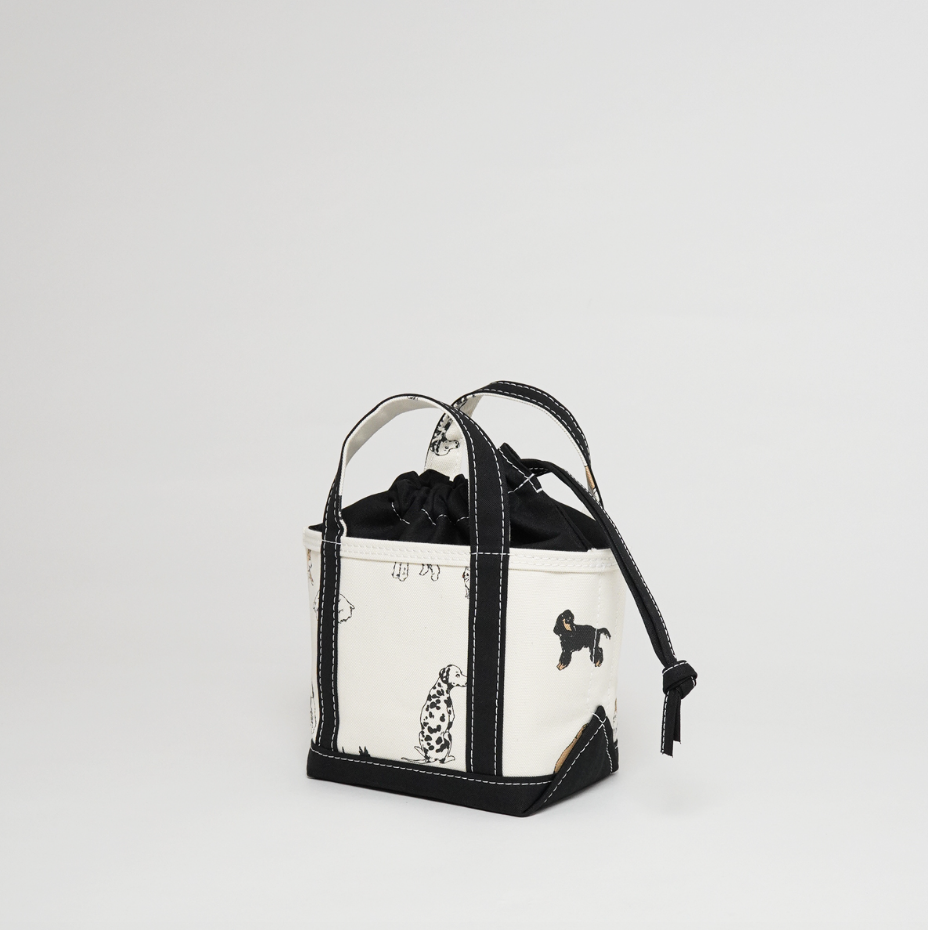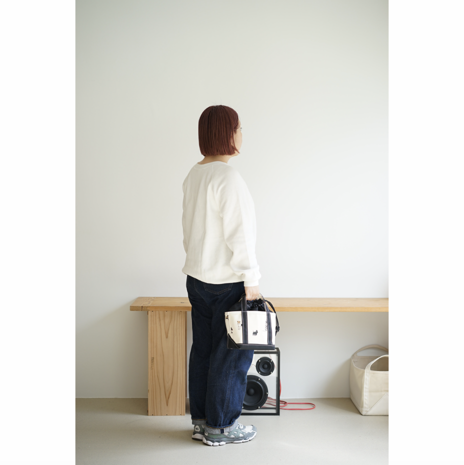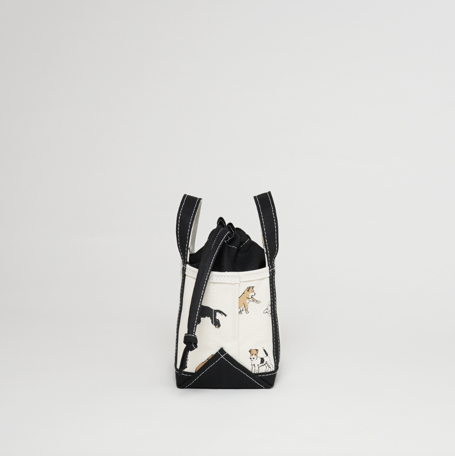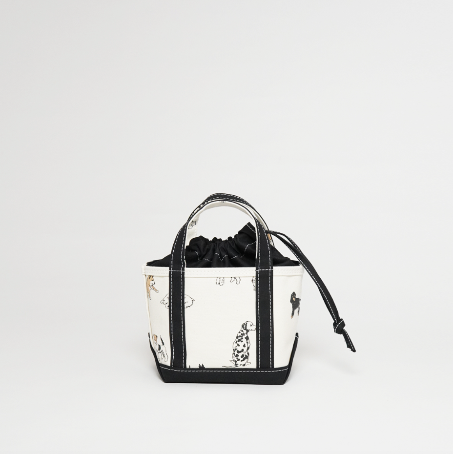지갑이나 휴대 등 필요한 최소한의 소지품이 들어가는 미니 사이즈의 토트 백입니다. 주머니 입구에는 스트링이 있어 짐 보관에 용이합니다.