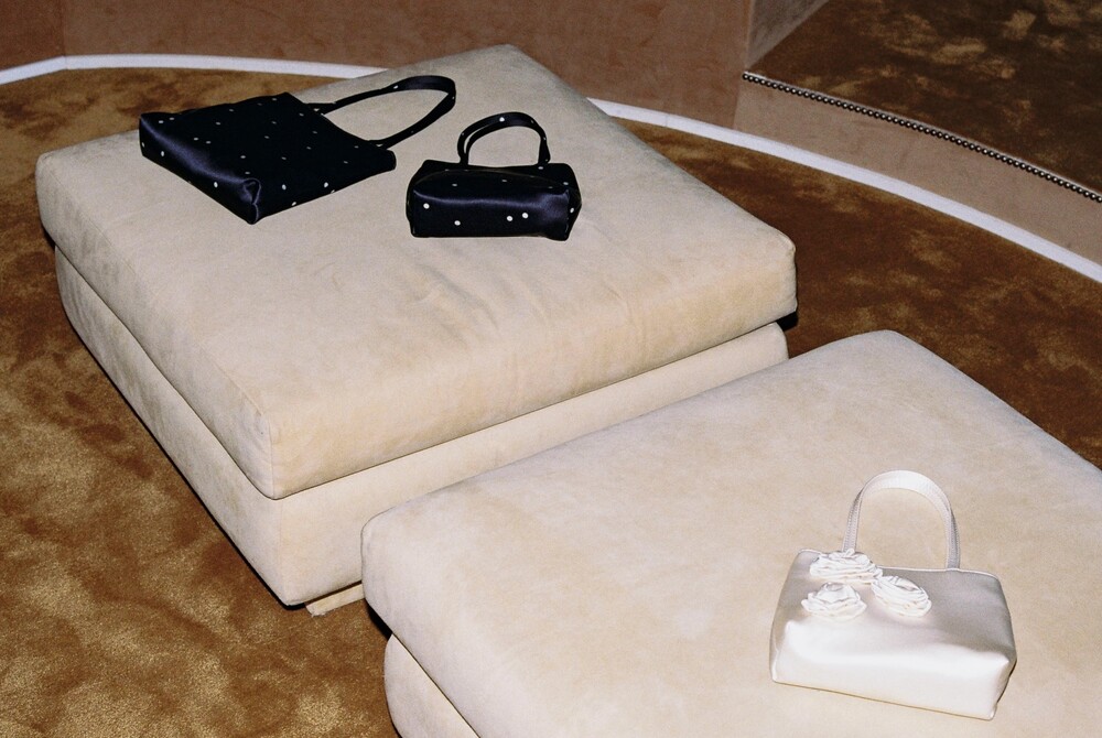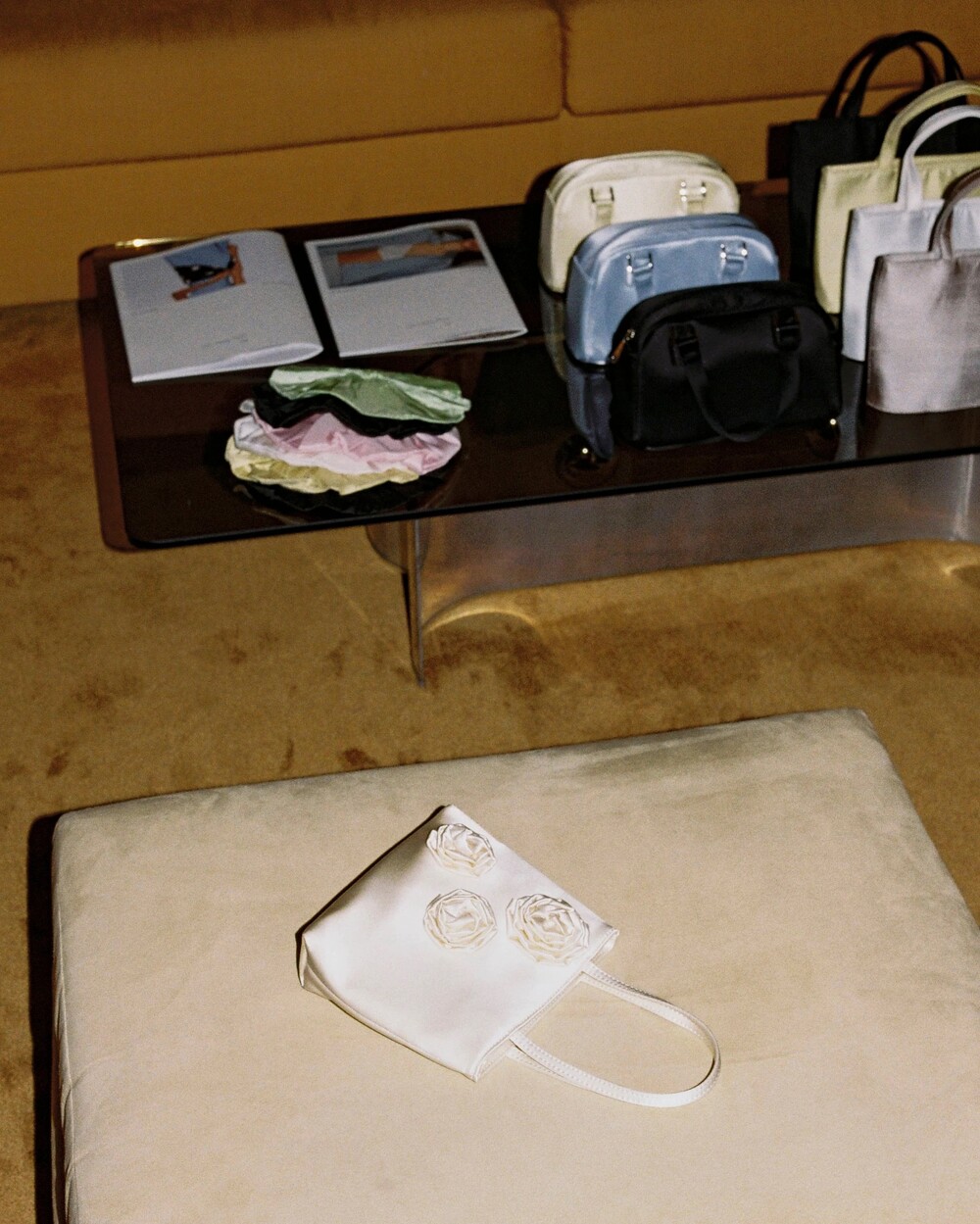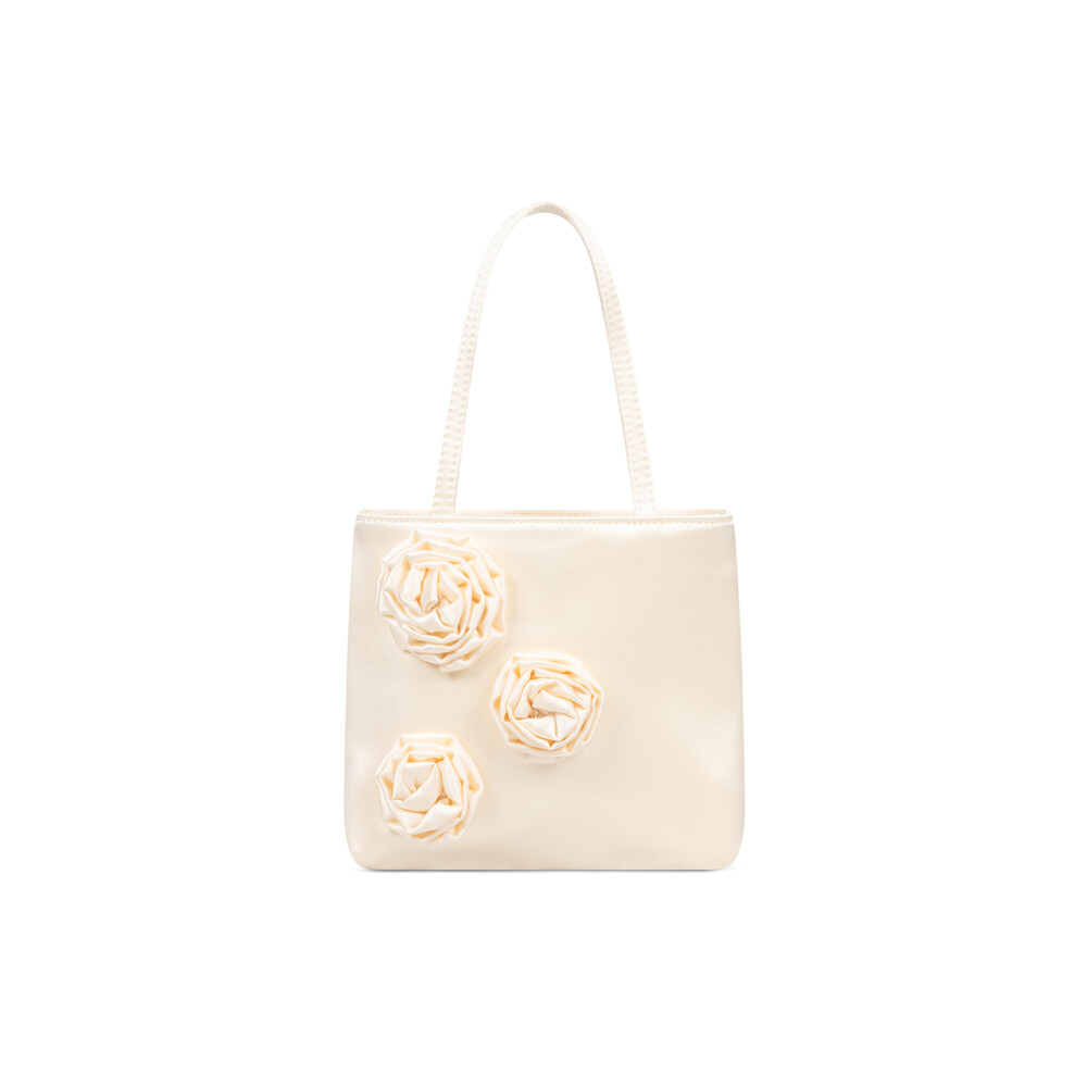 섬세한 플로럴 패턴과 다양한 크기의 로제트 장식이 특징인 Thea Bag을 소개합니다.